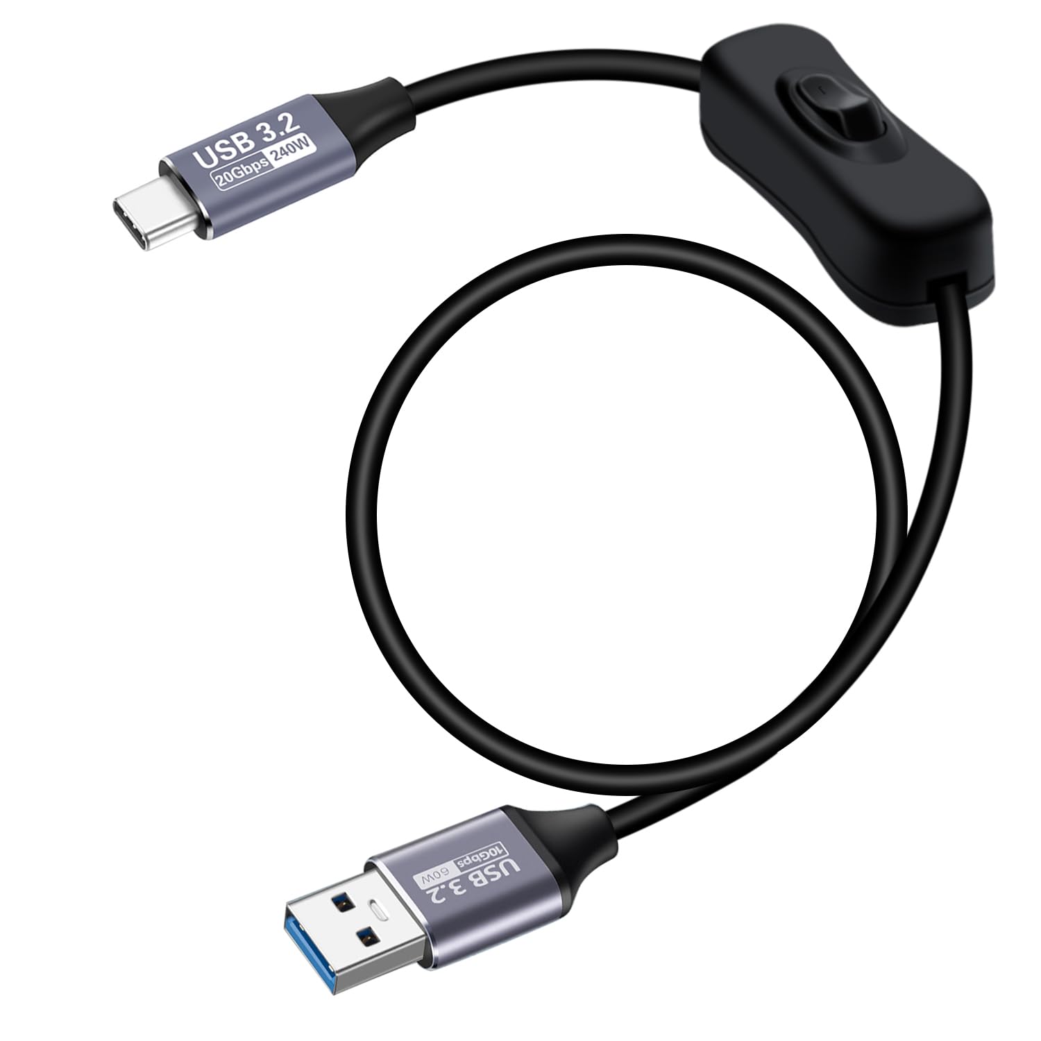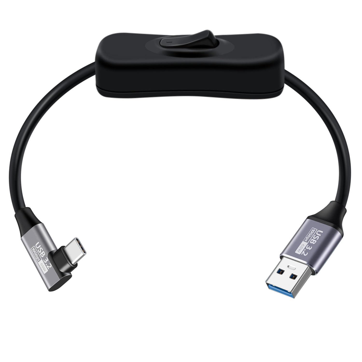 USB to Type C Cable with Switch USB 3.2 High Speed Data Transfer Cable 10Gbps 60W 3A, for Laptops, PC, Phone, Car (Black, 3.2FT /