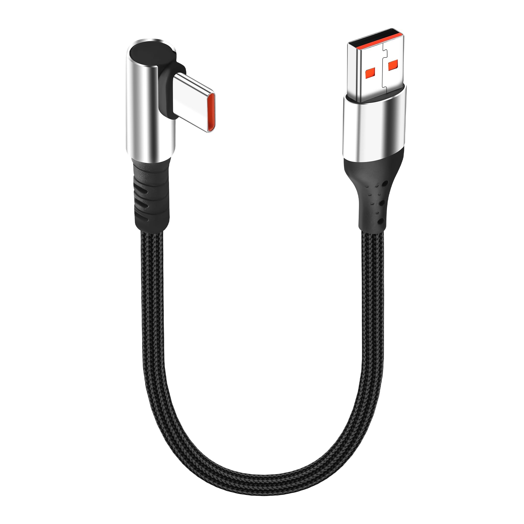 Cable de carga USB tipo C corto USB A a C, cable de carga rápida de 6 A, cable de carga tipo C de 90 grados para teléfono celular