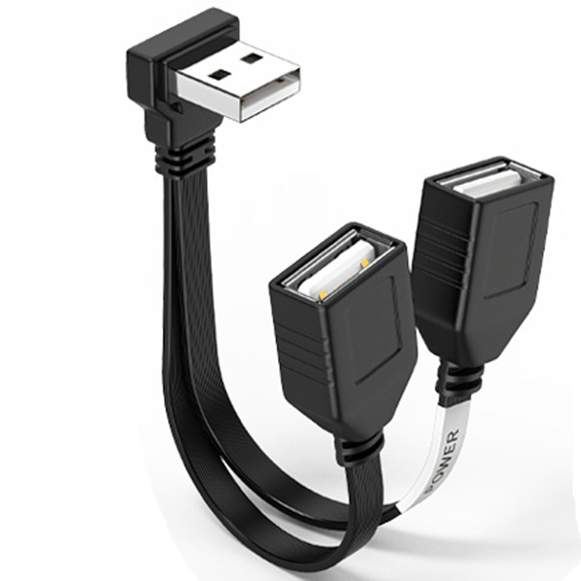 Cable divisor USB 1 en 2 salidas, 90 grados USB 2.0 A macho a doble USB hembra, cable de alimentación de carga y transferencia de