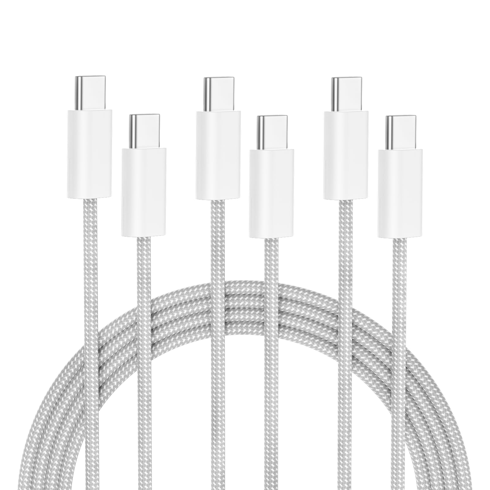 Cable USB C, paquete de 3 [6.6 pies] 60 W USB tipo C a USB C, cable de carga rápida para iPhone 16 15 Pro Plus Pro Max, para iPad