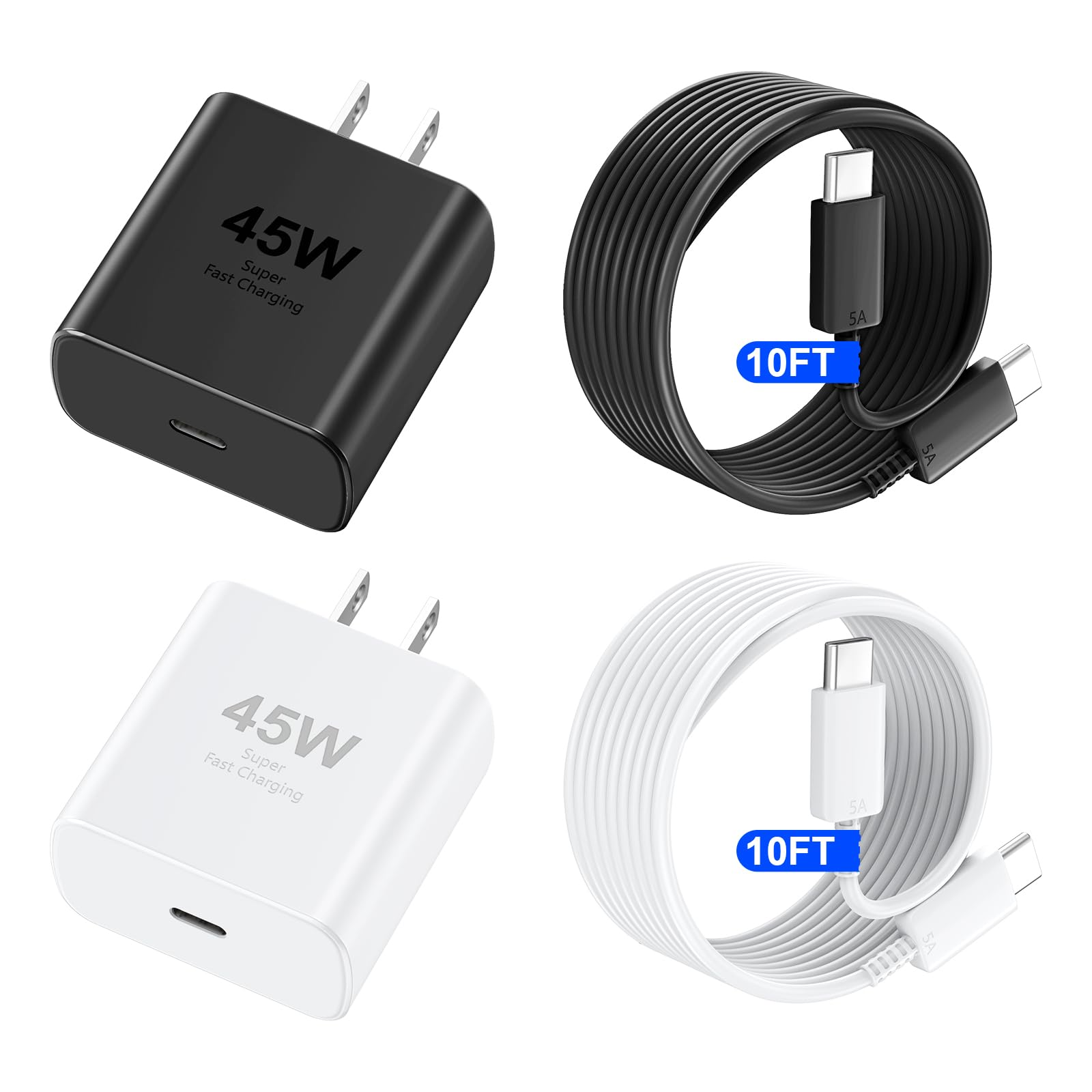 Cargador para teléfono 16 Pro Max de carga rápida, 45 W USB C Phone 16 Bloque de carga súper rápido con cable de carga tipo C de 1