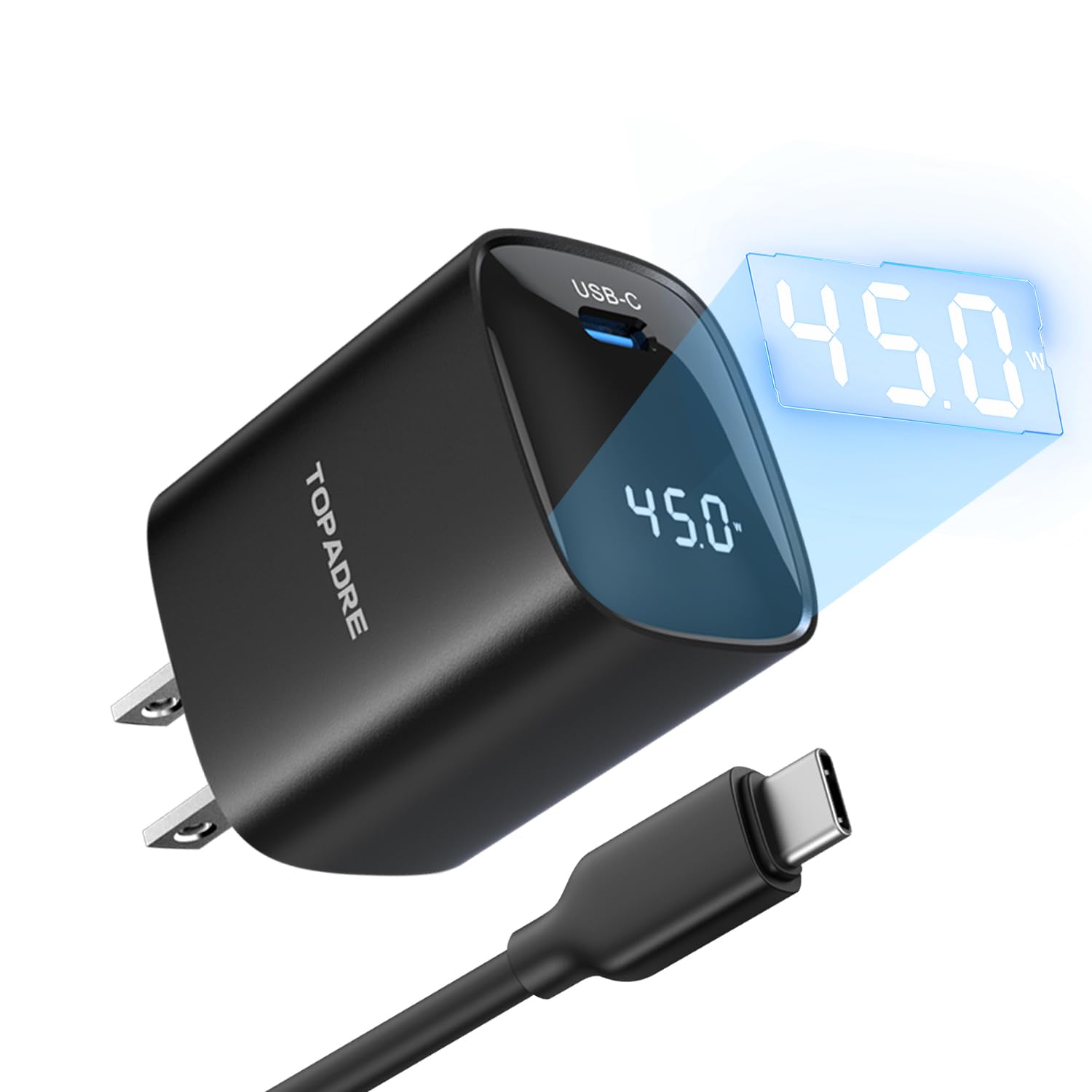 Cargador súper rápido tipo C de 45 W con pantalla LED, PPS USB C cargador de pared con cable de 100 W para Samsung Galaxy S24 Ultr