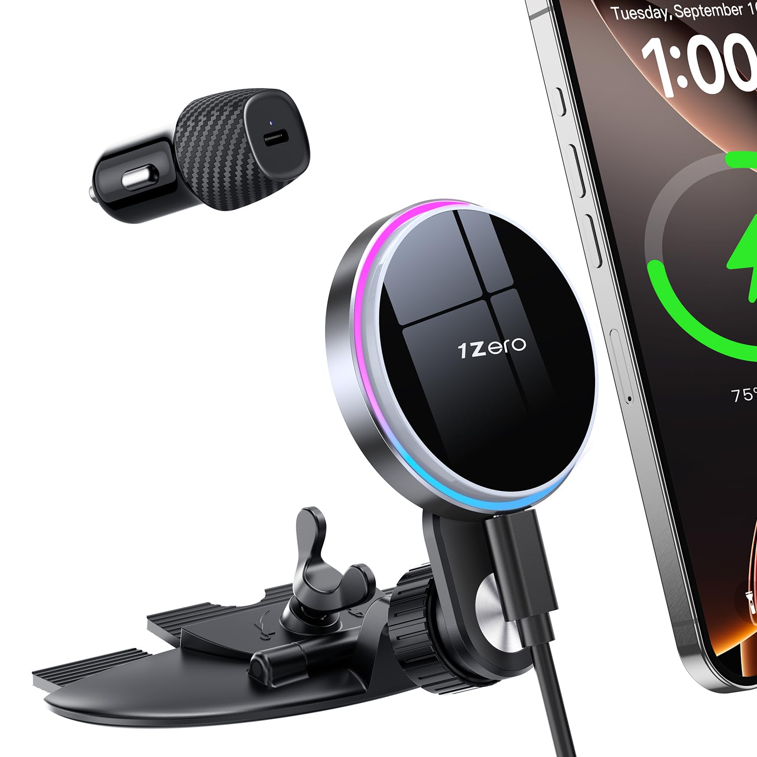 1Zero Cargador MagSafe de CD para automóvil, soporte de teléfono ultra magnético para carga de ranura de CD, soporte de cargador d