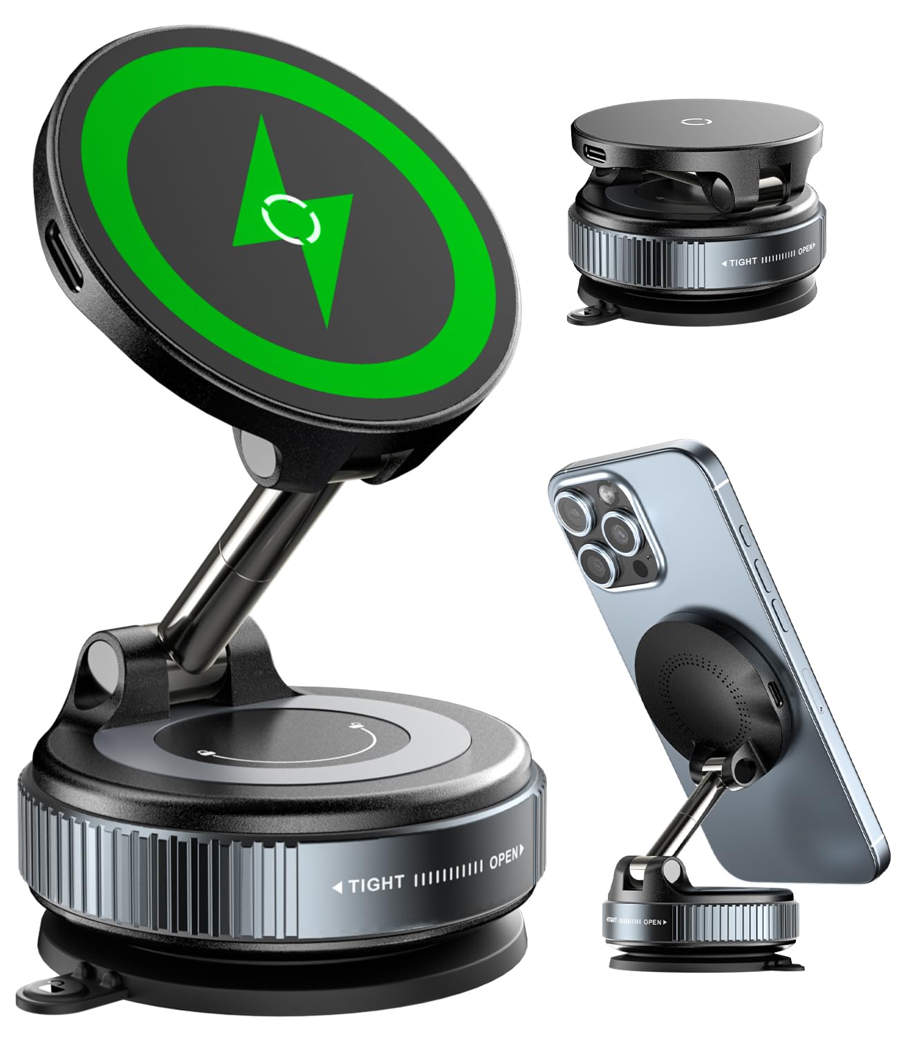 CloudValley Soporte de cargador de coche inalámbrico de 15 W, soporte magnético de succión al vacío de nano gel para iPhone 16/15/