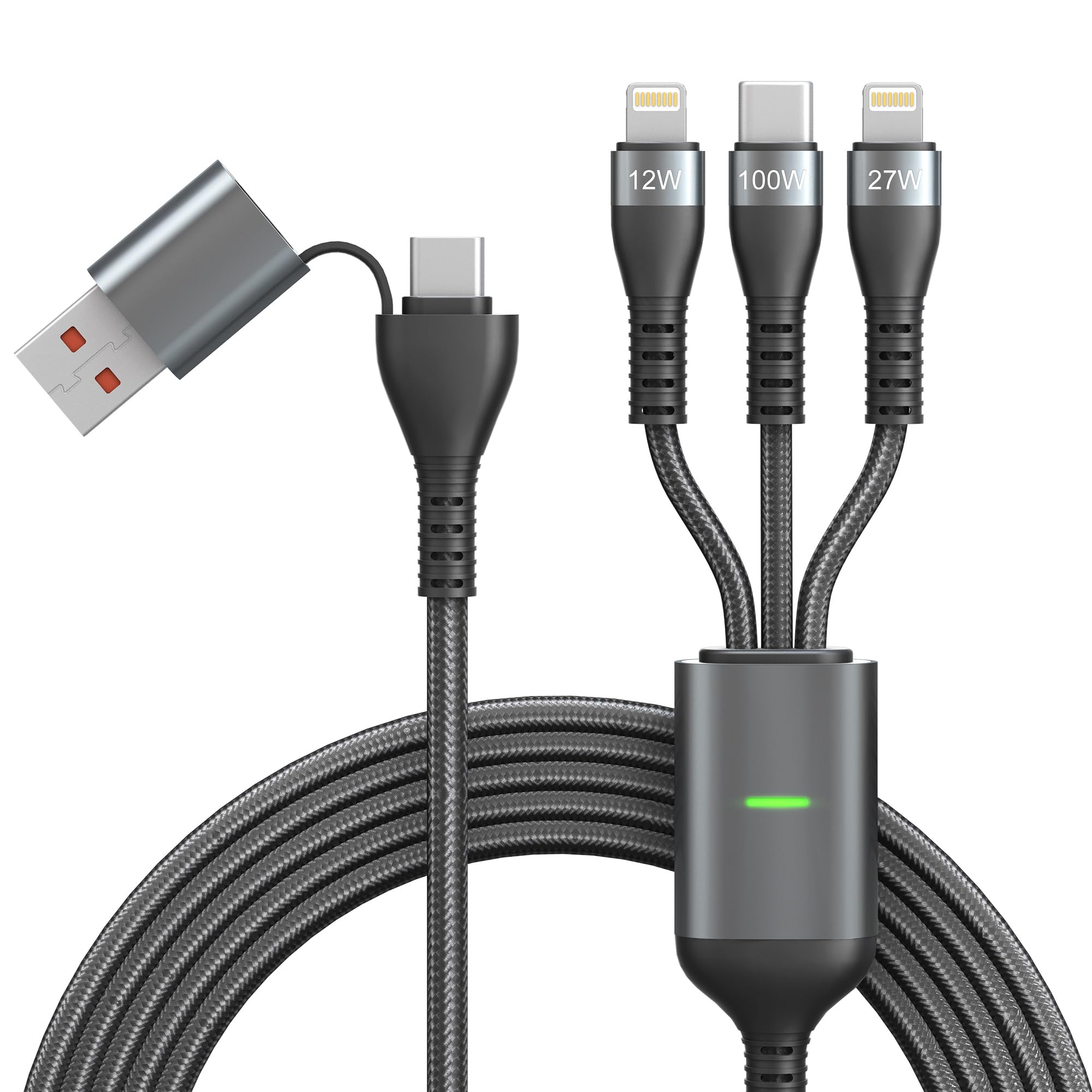 Cable de carga múltiple USB C de 100 W con transferencia de datos de 480 mbps, cable de carga rápida USB C de 9.8 ft/10 pies de la