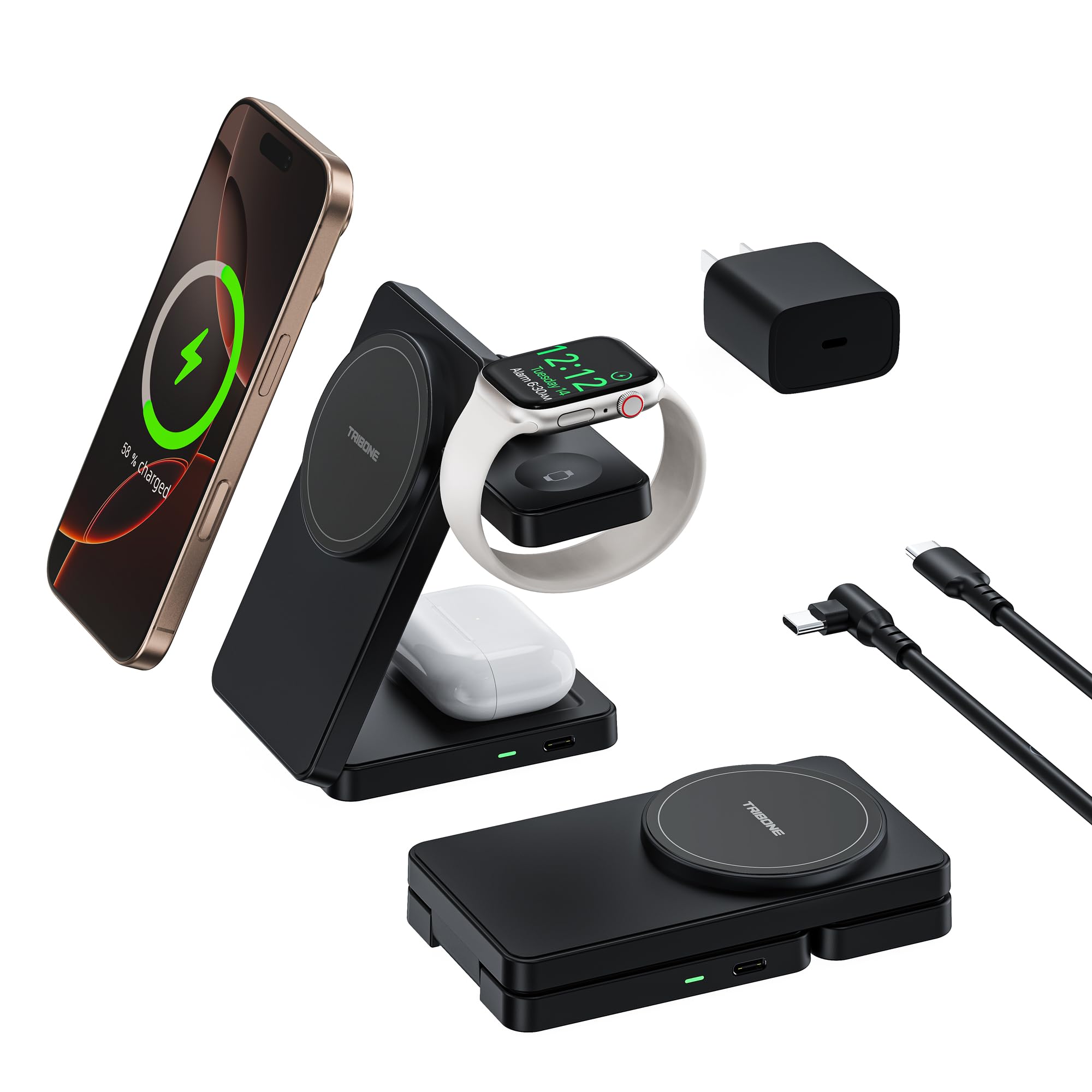 Estación de carga 3 en 1 para iPhone 16 15 14 13 12 Series, cargador inalámbrico para Apple Watch, soporte de carga magnético de v