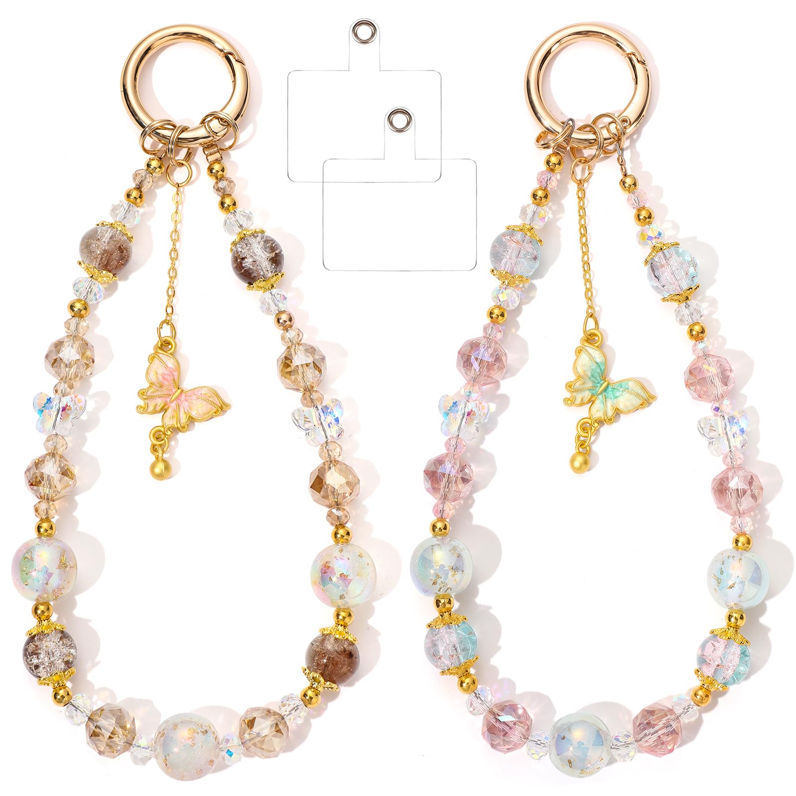Correa de abalorios para teléfono, lazo rosa, fresa, cereza, correa universal para muñeca para funda de teléfono