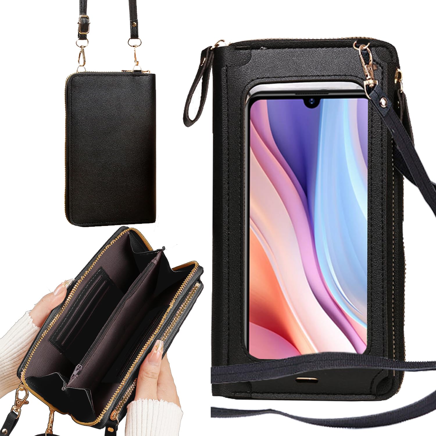 Bolso cruzado pequeño para mujer, con pantalla táctil, protección RFID, cartera para teléfono celular