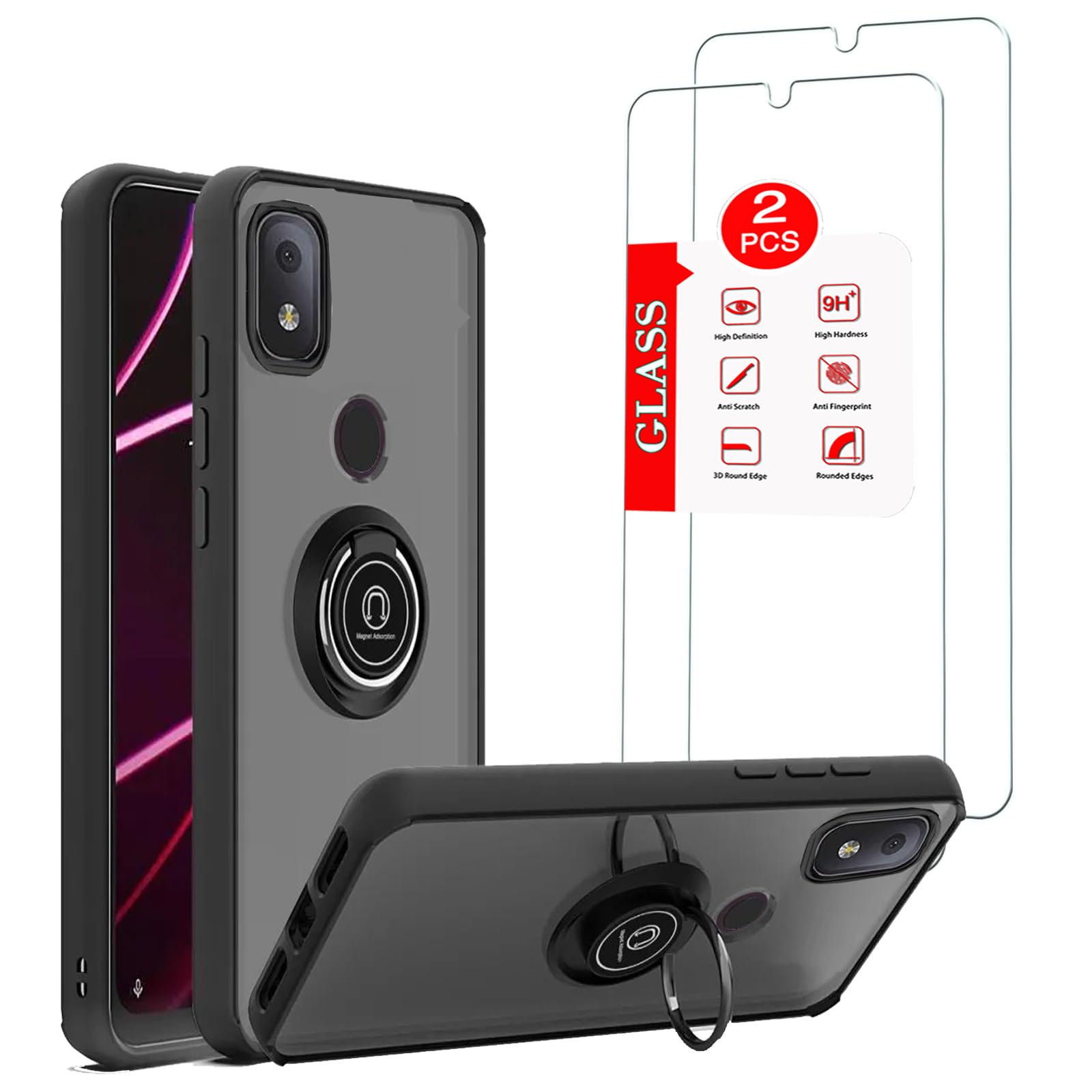 Funda para T-Mobile REVVL 4 con protector de pantalla de vidrio templado, para T-Mobile REVVL 4 Ultra Thin Heavy Duty Armor Protec