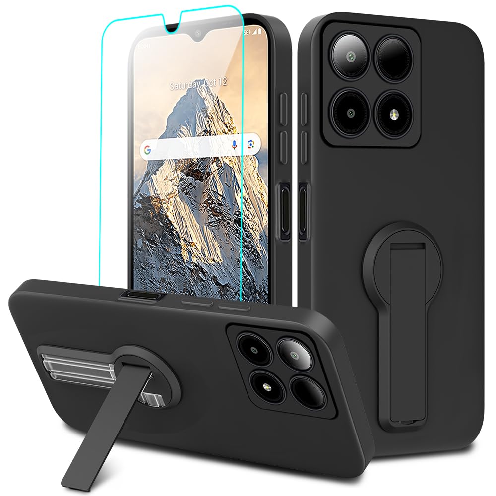 Funda compatible con Boost Mobile Summit con protector de pantalla de cristal, soporte oculto plegable giratorio de 360°, de silic