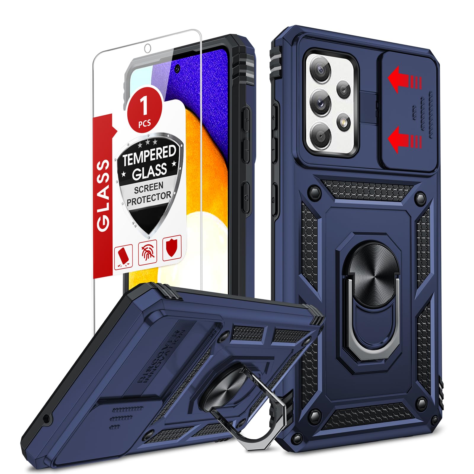 LeYi Funda compatible con Galaxy A52-5G: con 1 protector de pantalla y soporte duro, TPU flexible de cuerpo completo y material de