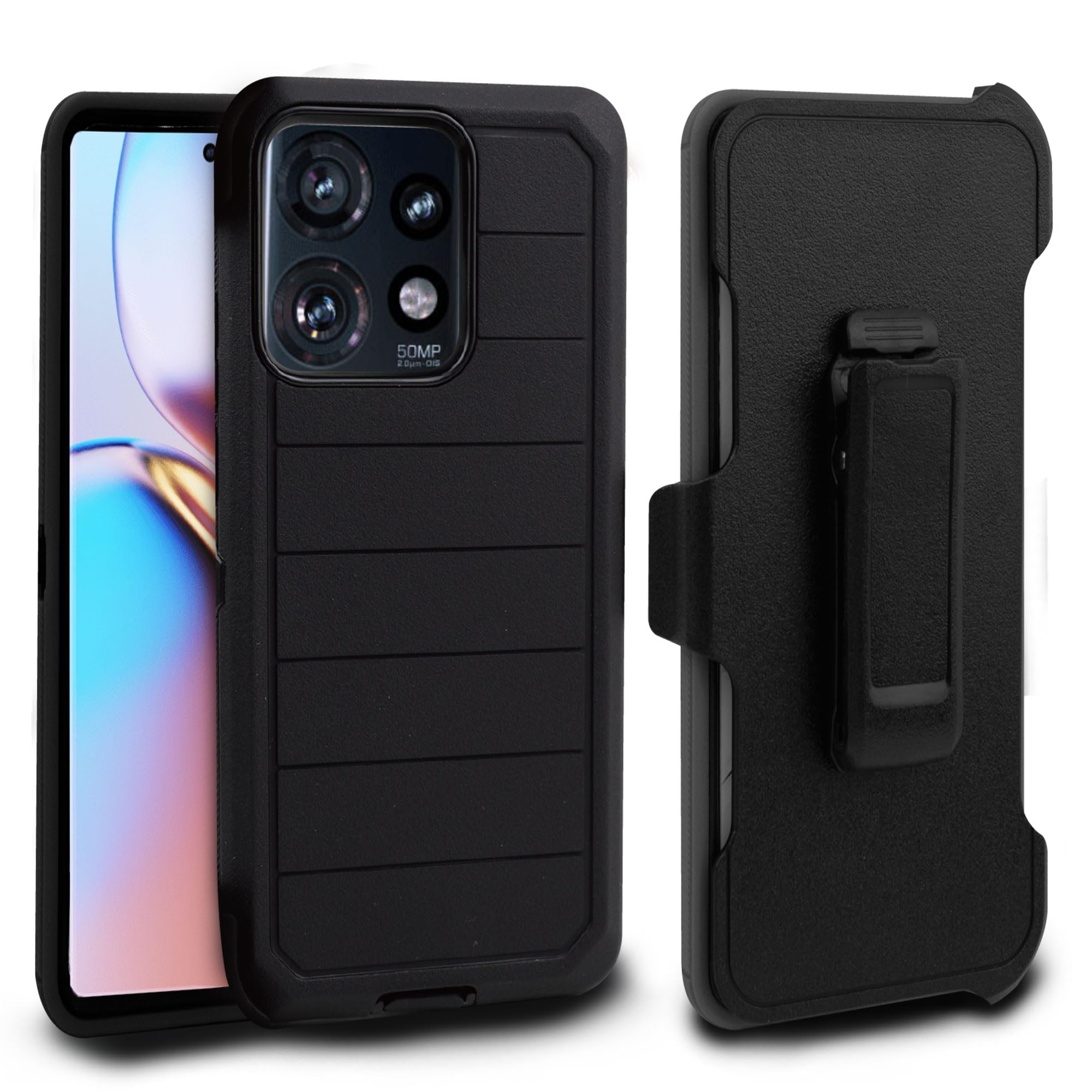 Funda compatible con Motorola Moto Edge 5G 2024, funda duradera de grado militar con clip para cinturón, funda de defensa resisten