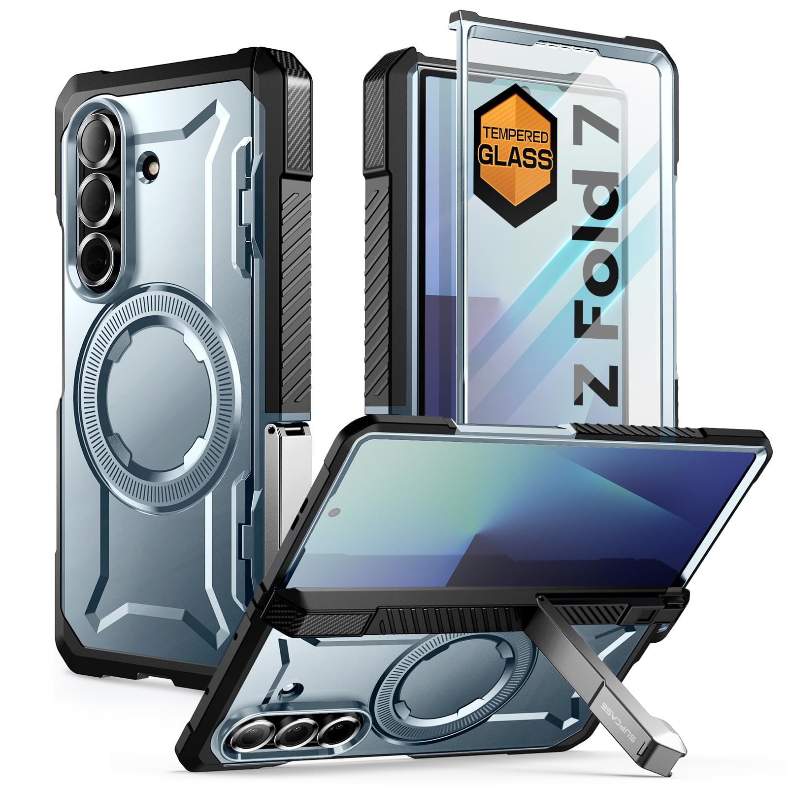 SUPCASE Funda para Samsung Galaxy Z Fold 7 con soporte (agarre UB), [compatible con MagSafe] [Protector de pantalla de vidrio temp