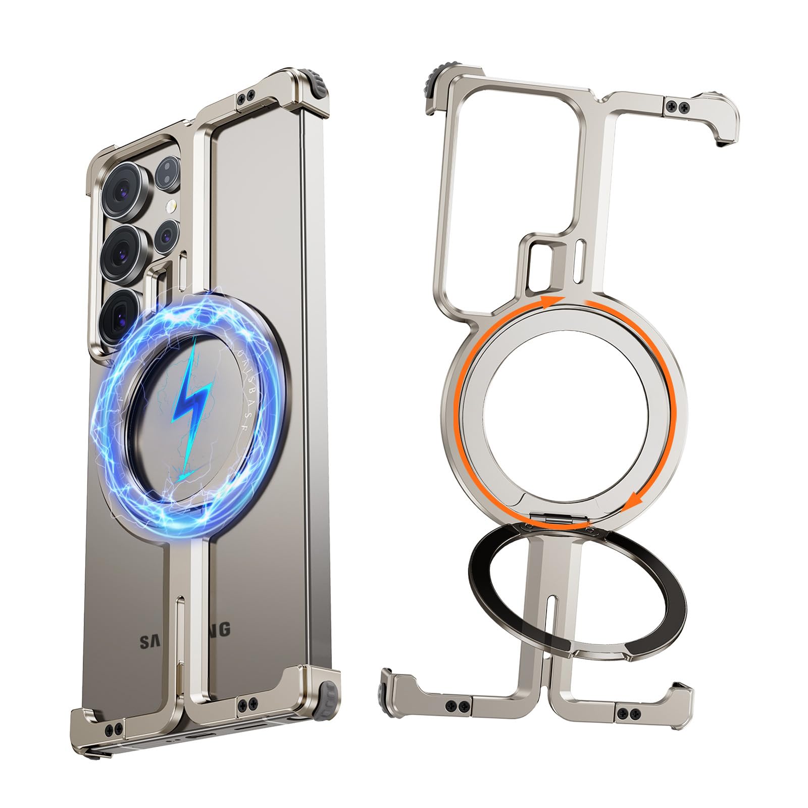 Funda para Samsung Galaxy S25 Ultra con MMMag,Soporte magnético giratorio de 360°,Bisel menos delgado de metal a prueba de golpes