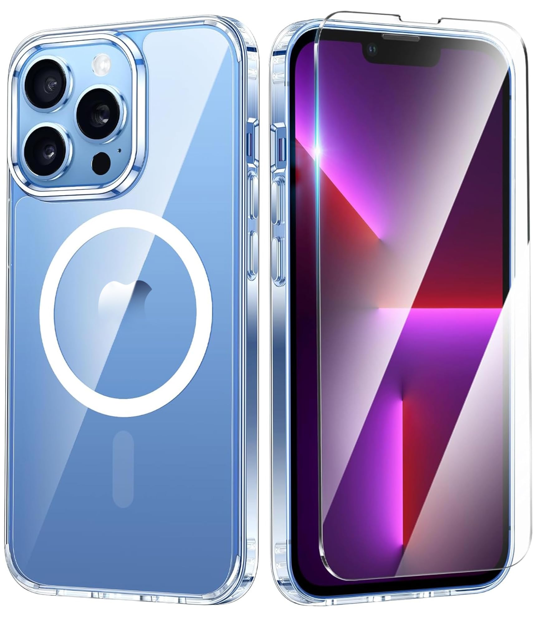 FNTCASE Funda transparente para iPhone 13 Pro-Max, delgada y transparente, fuerte magnética, antiamarilleo, protección de grado mi