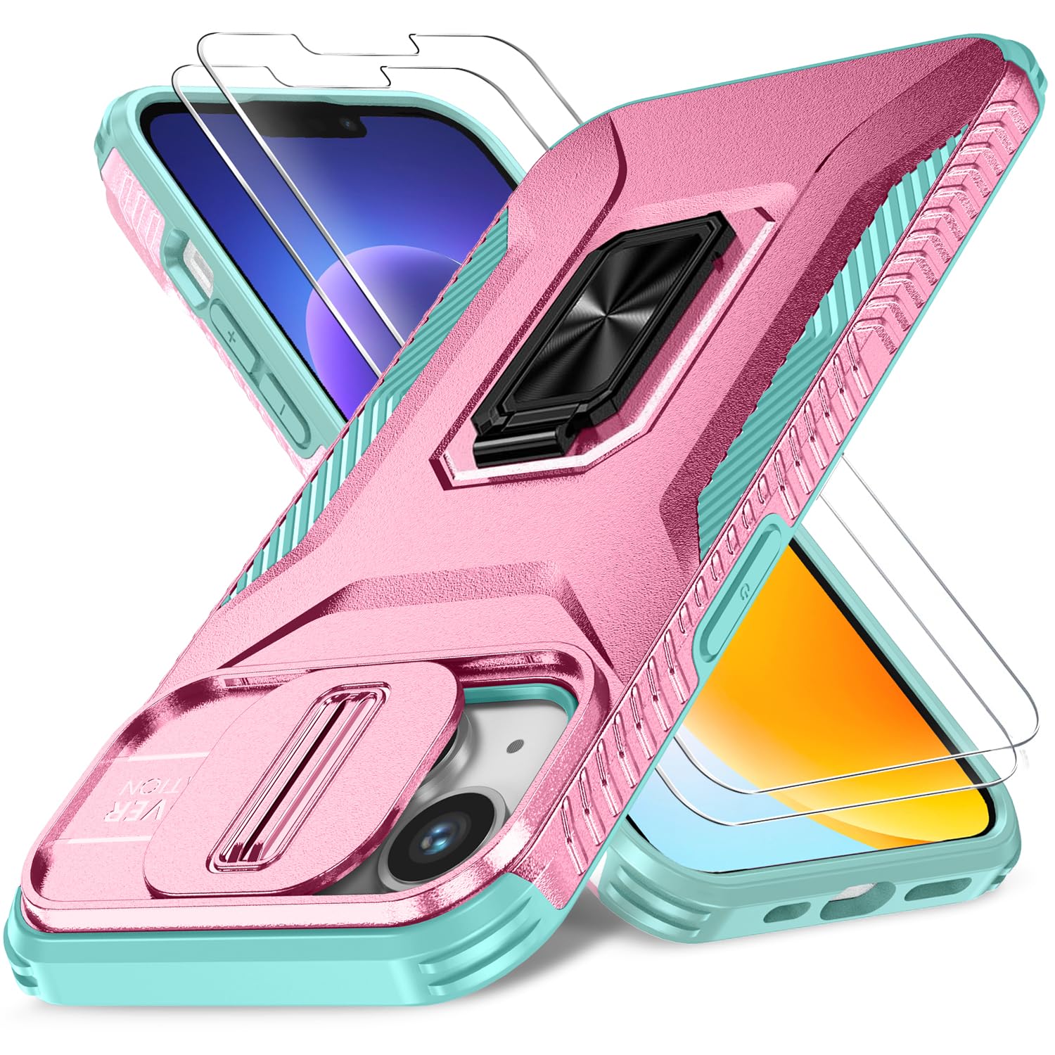 Funda para iPhone 13 iPhone 14 Celadon rosa | 6.1 pulgadas, cubierta deslizante para cámara, protector de pantalla, paquete de 2,