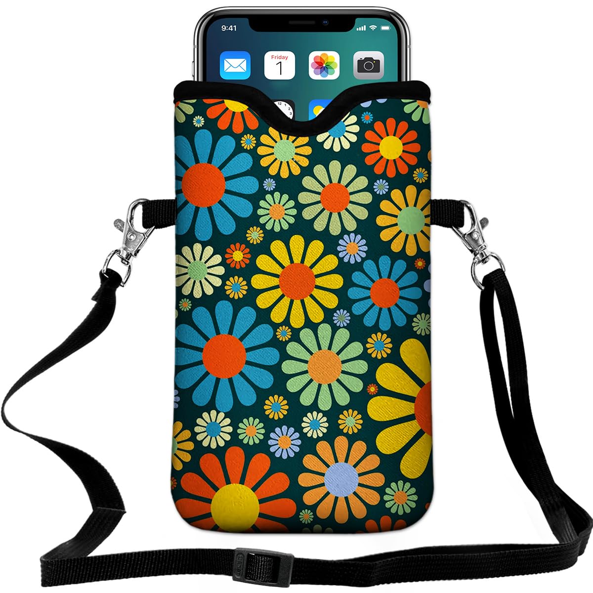 Funda para teléfono celular, protección móvil, patrón estampado de flores hippie | Neopreno, 7.5 x 4.3 pulgadas, tela, bolsa, con