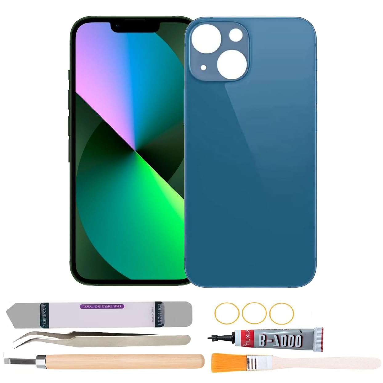 Back Rear Glass Cover Replacement Compatible with iPhone 13 Mini 5.4 inches with Repair Tool Kits (Blue)