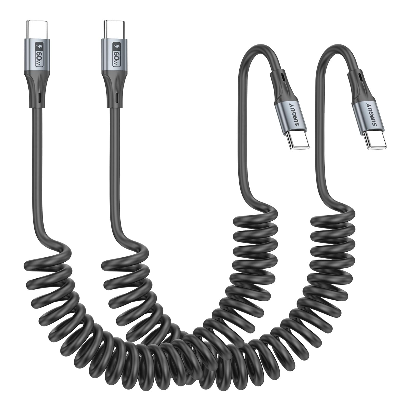 SUNGUY Cable USB C a USB C en espiral, paquete de 2 cables de 60 W [1.5 pies-5 pies] USBC a USBC Android Auto y Carplay para iPhon