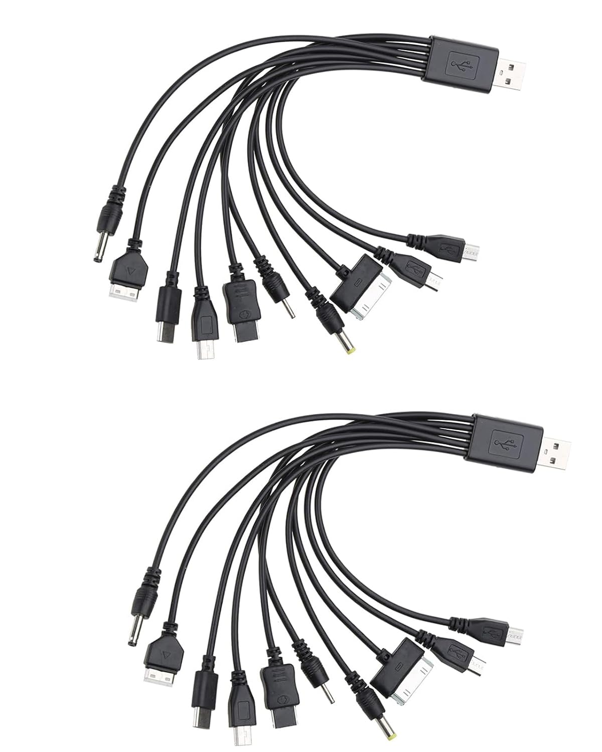 Paquete de 2 cables USB 10 en 1 universales para teléfonos celulares, cable adaptador de altavoz de auriculares, cable de carga US