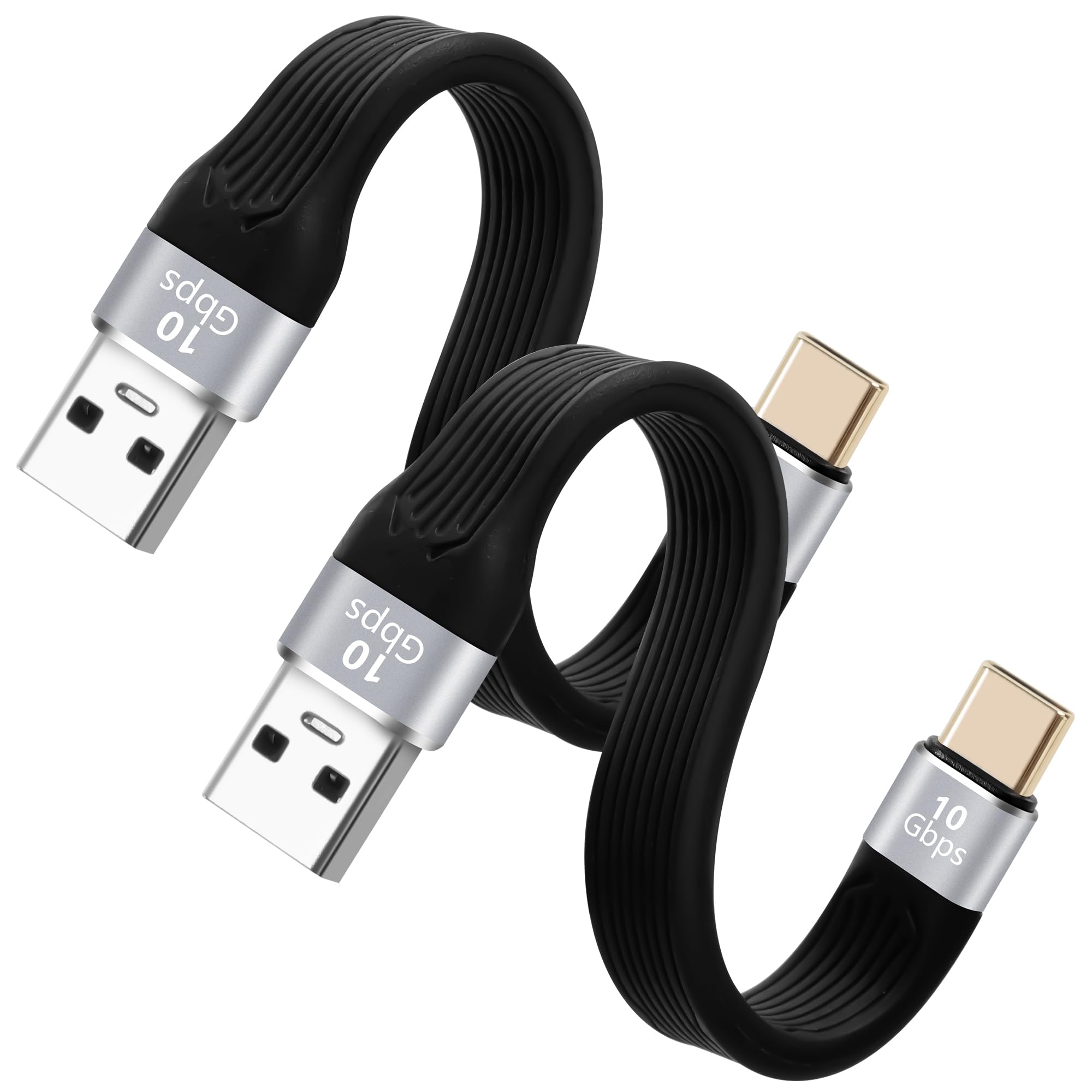 Cable USB C plano corto de 0.4 pies, paquete de 2, cable de carga USB-A a USB-C, compatible con sincronización de datos de 10 Gbps