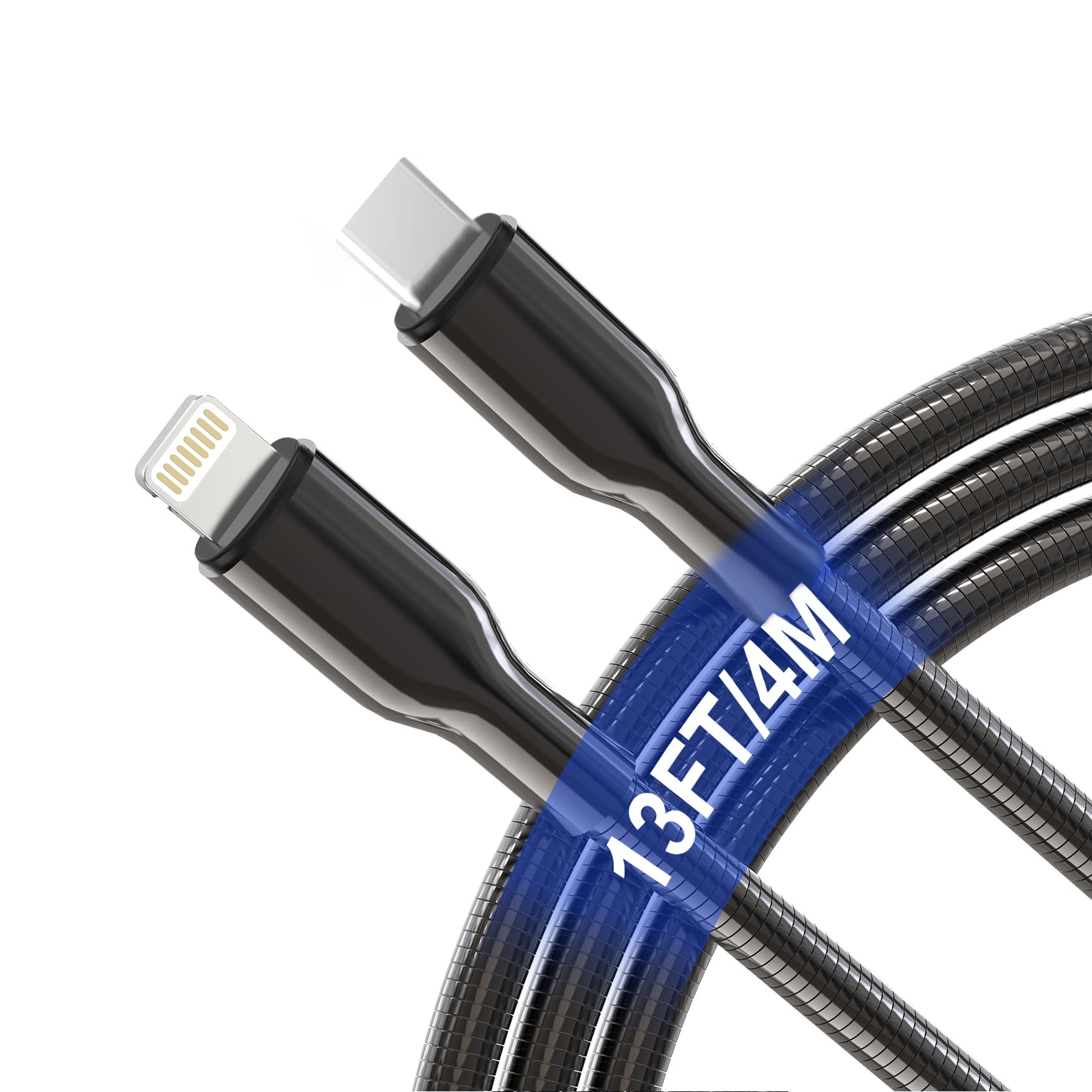 13Ft Metal USB C to Lightning Cable Chew Proof iPhone Charger Cord – MFi Certified Type C Metal Braided Cable Dog Cat Proof Cord w