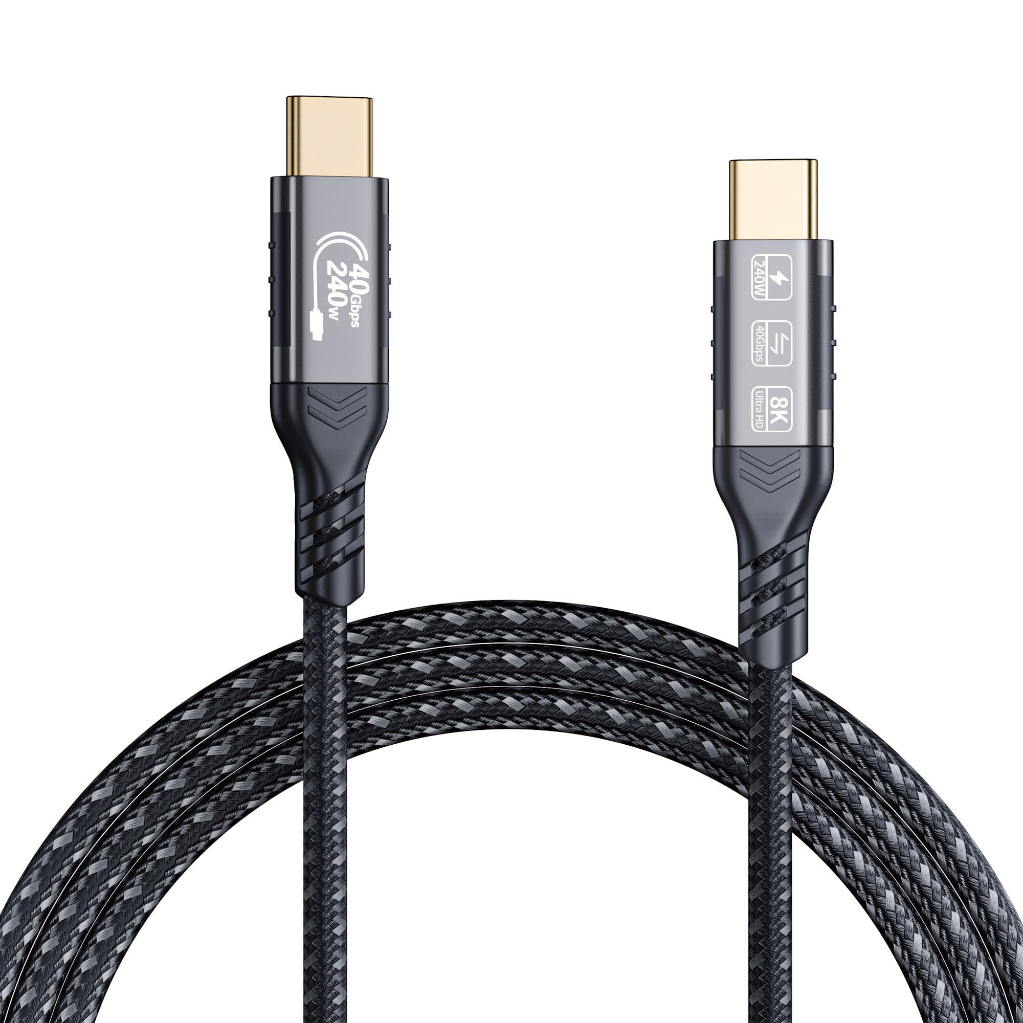 Cable de datos USB 4 de 40 Gbps 8K Video 4K HD @60Hz 240W/120W Cable de carga USB4/USB C Cable de pantalla negro compatible con Th