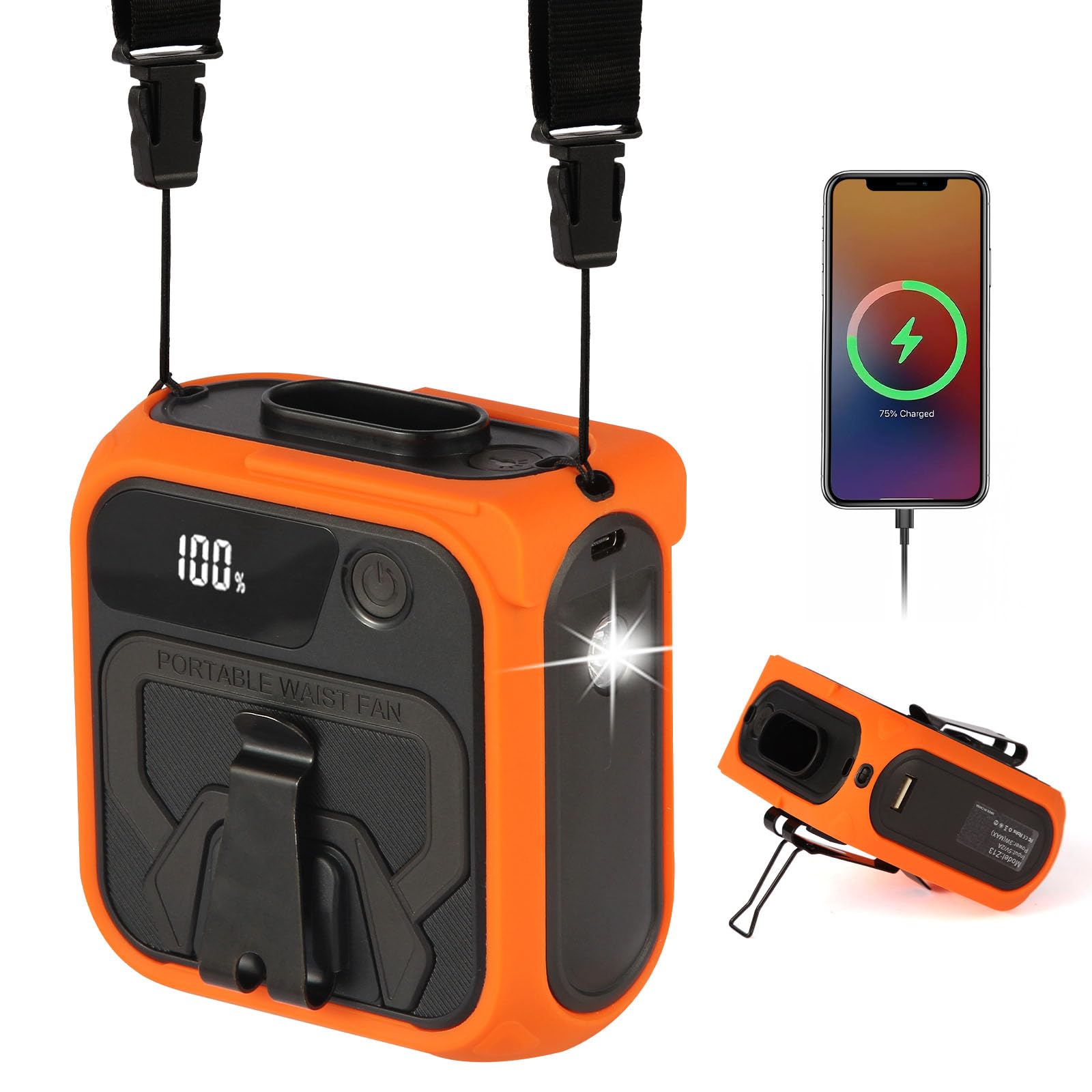 Ventilador de cintura portátil con 5 velocidades, linterna LED y banco de energía de 10000 mAh para teléfono inteligente, regalo d
