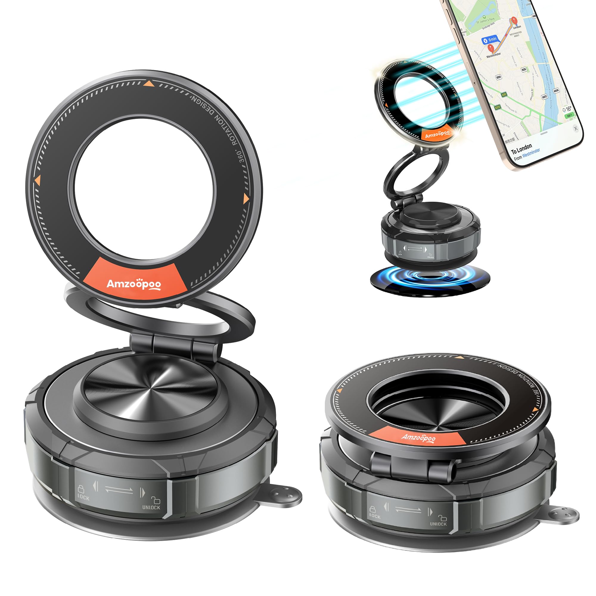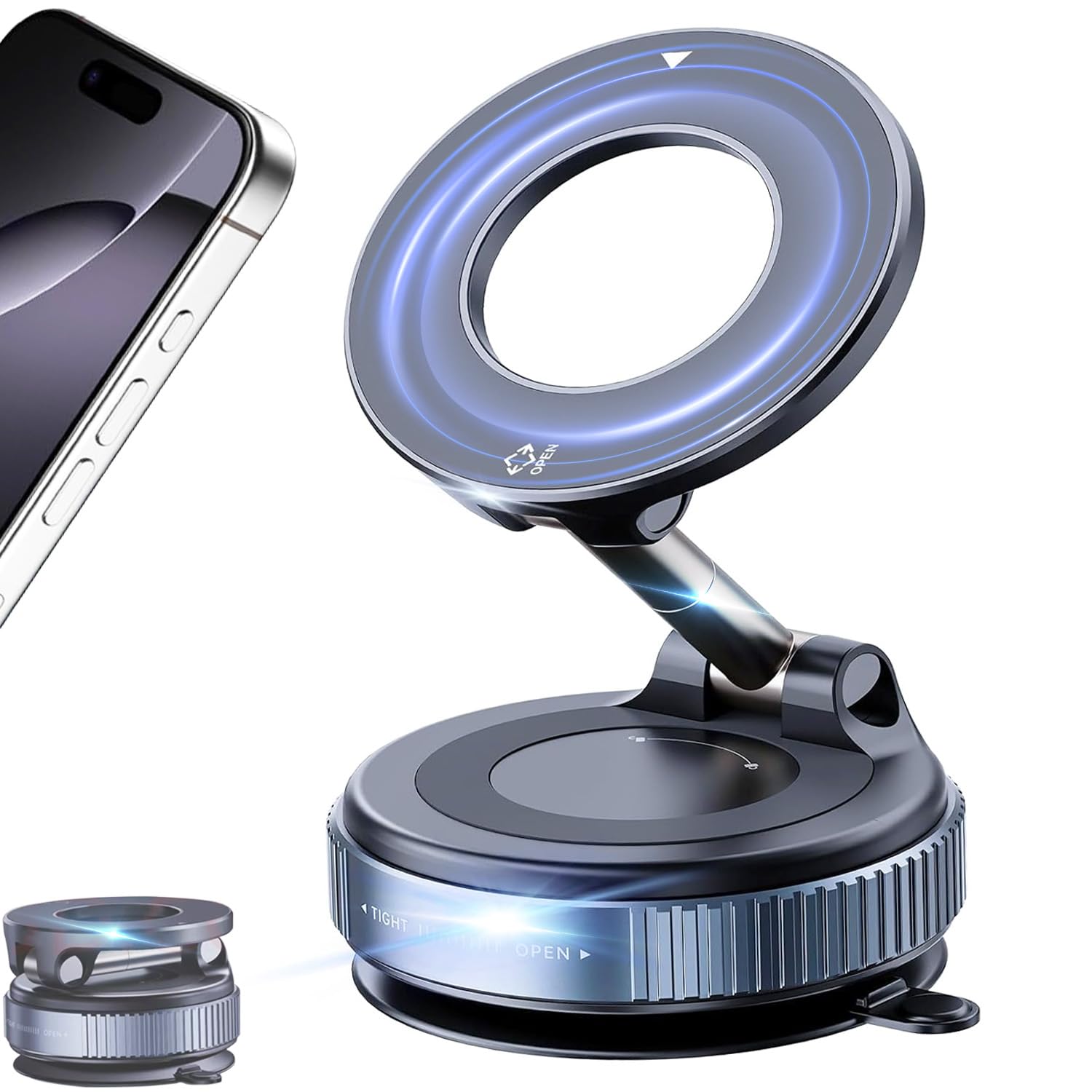Soportes de teléfono para tu auto para MagSafe 360° de succión de vacío ajustable para teléfonos móviles de automóvil, soporte par