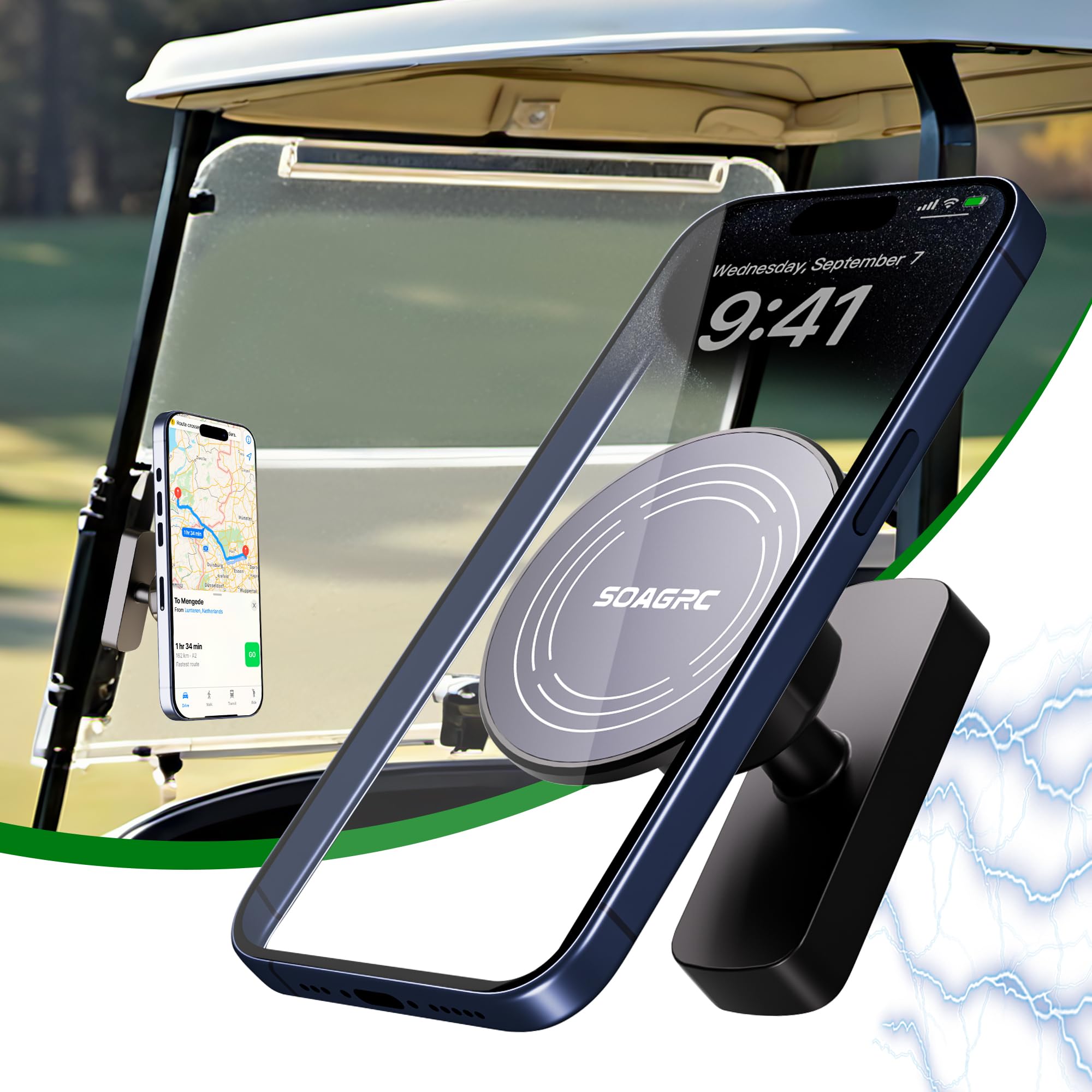 Soporte de teléfono para carrito de golf, soporte magnético para teléfonos MagSafe y universales, ajustable en 360°, se adapta a E