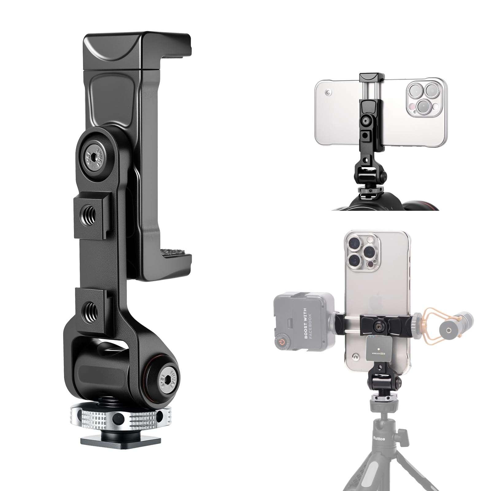 Adaptador de montaje de trípode de metal para teléfono con zapata fría, giro de 360° de inclinación de 180°, abrazadera de soporte