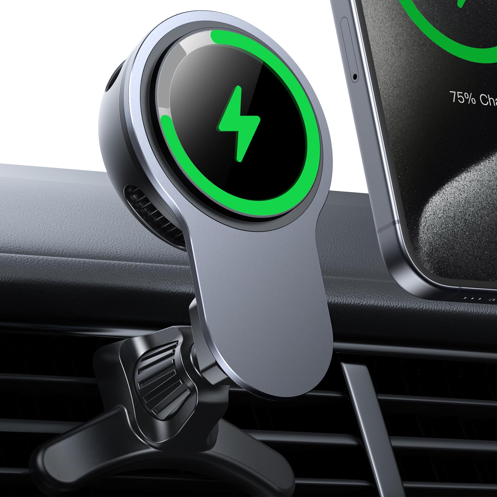 NEWQ Cargador de coche MagSafe de 15 W, carga de refrigeración de 15 W, soporte de teléfono celular para ventilación de automóvil,