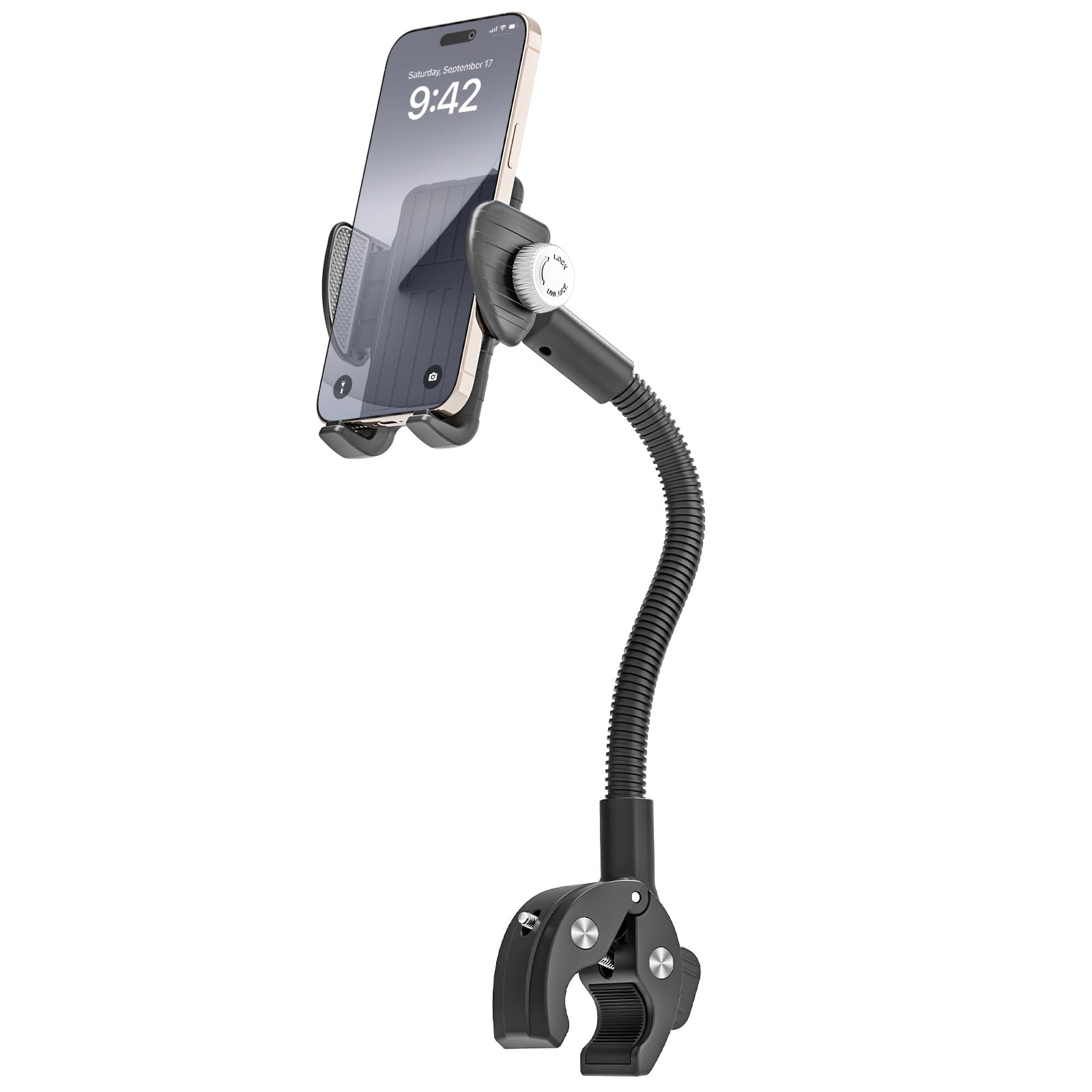 Soporte de teléfono para bicicleta, soporte universal de cuello de cisne ajustable de 360°, instalación sin herramientas para bici