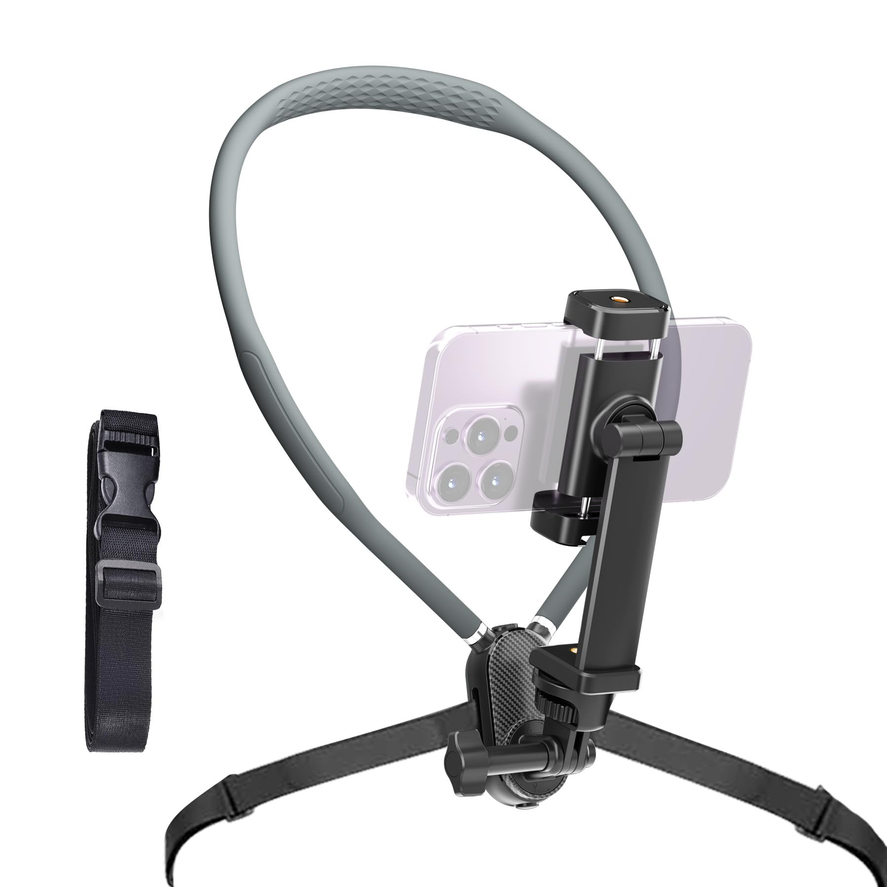 Soporte de teléfono para el cuello para Go Pro/grabación de video, manos libres POV/Vlog Selfie Mount con correa de pecho, ajustab