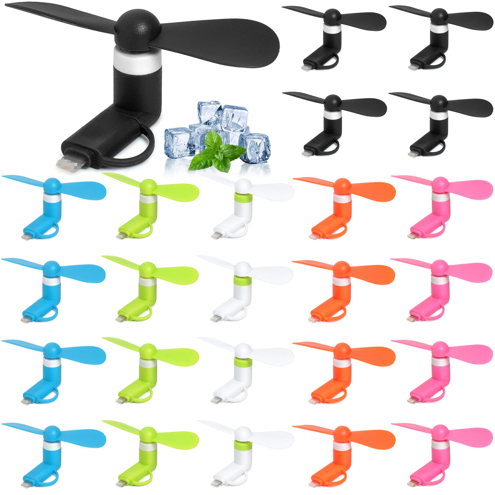 Paquete de 24 ventiladores de teléfono a granel, mini ventilador portátil 2 en 1 para teléfono celular compatible con iPhone, iPad