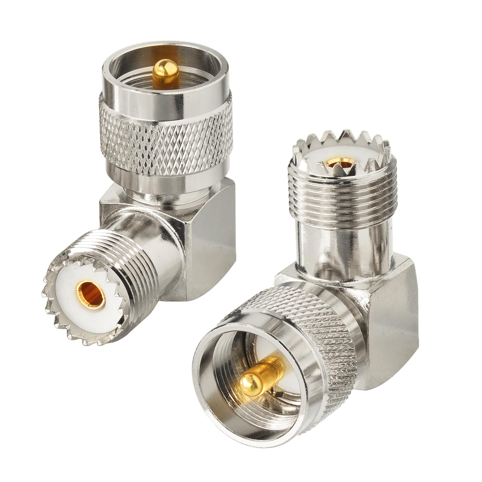 Yuslao PL259 Conectores coaxiales PL259 a SO239 Adaptador de ángulo recto Conector de cable coaxial de radio Jamón para antena de