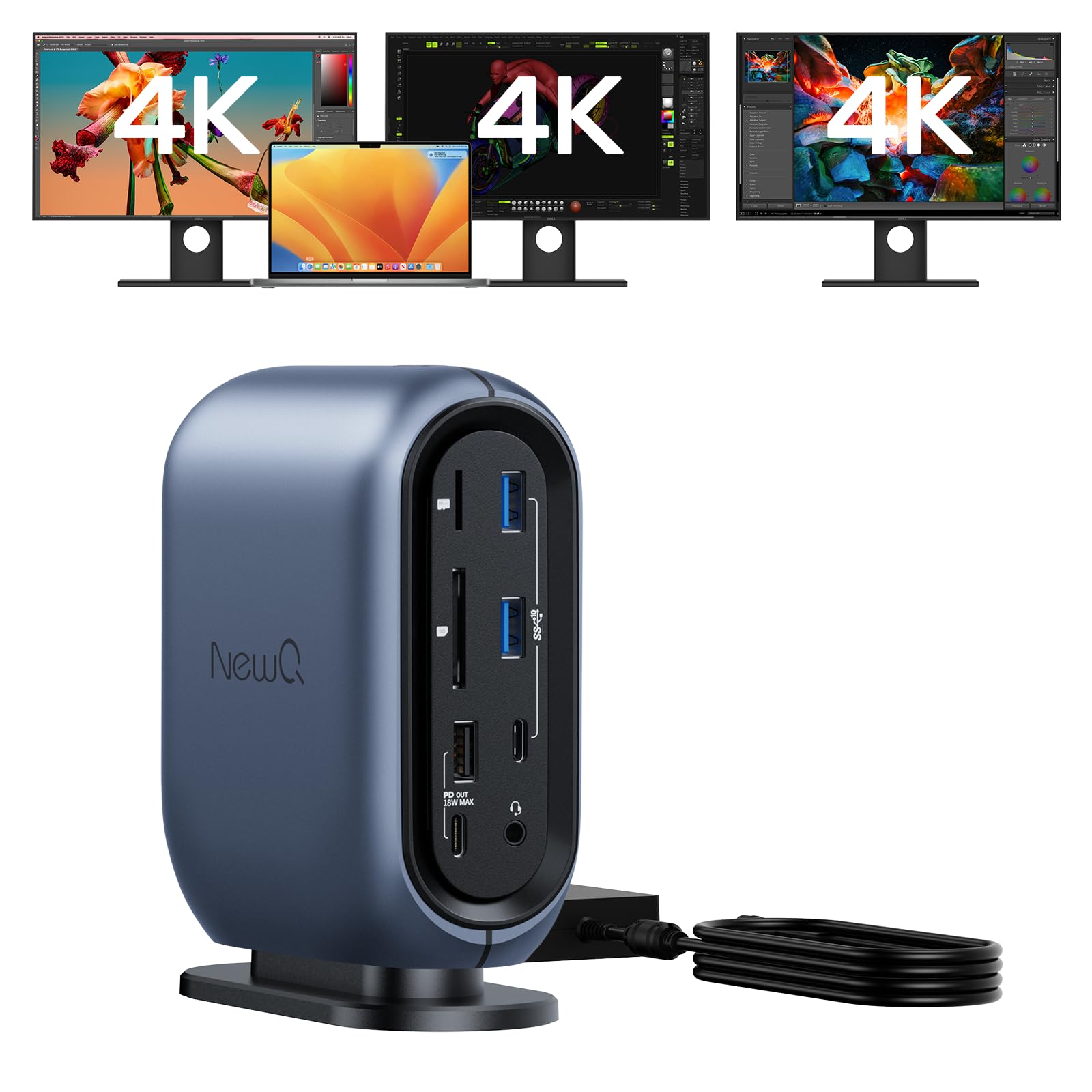 Triple Display Docking Station with 150W Power Adapter for Windows and MacBooks, Equipped with Multiple High-Speed Ports