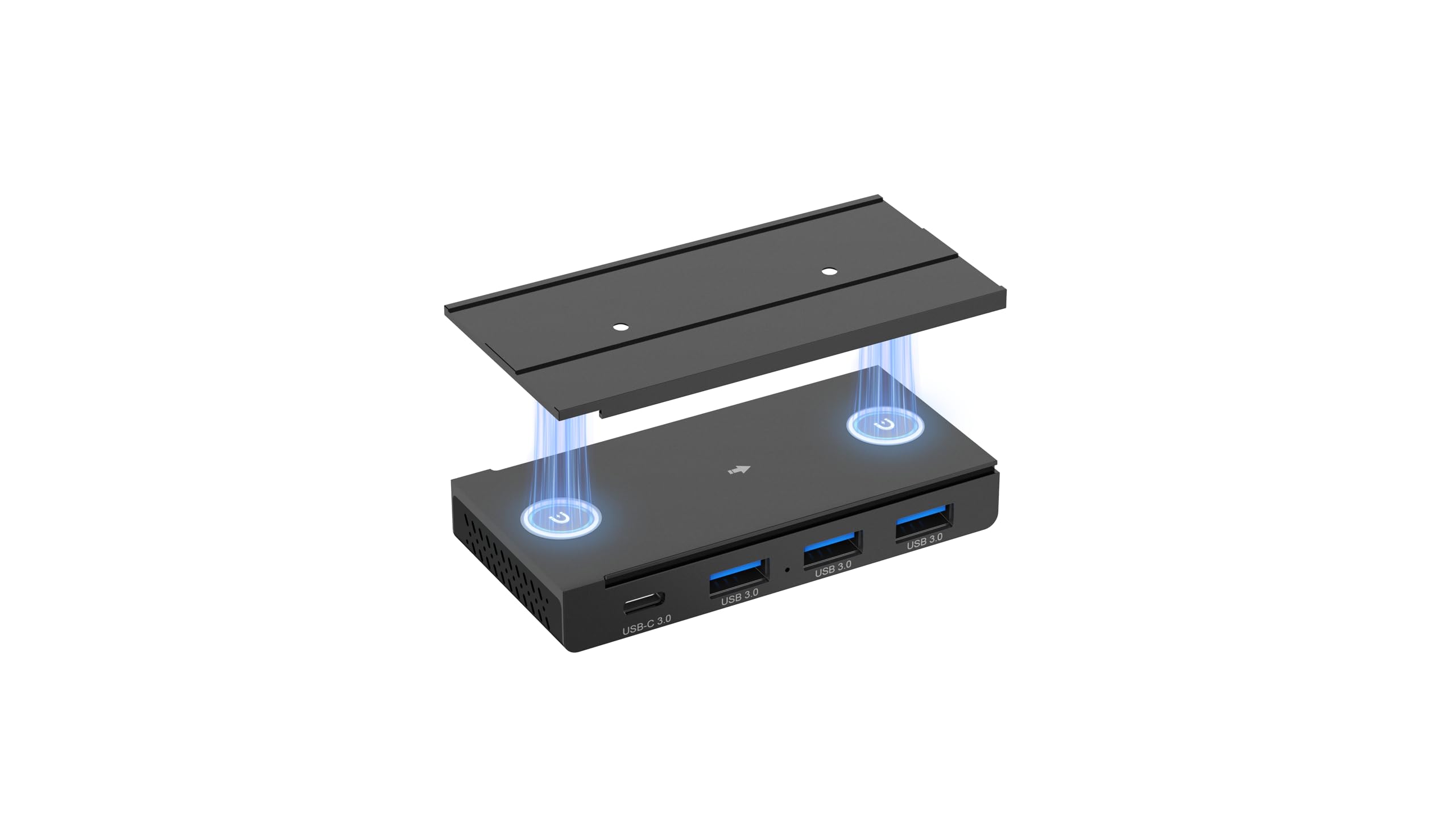 EJAY 4-Port Magnetic USB Hub, 3 USB 3.0 + 1 Type C Port, 5Gbps Data Transfer, Includes 2 Packs Sliding Rail, Screws and Sticky Pad
