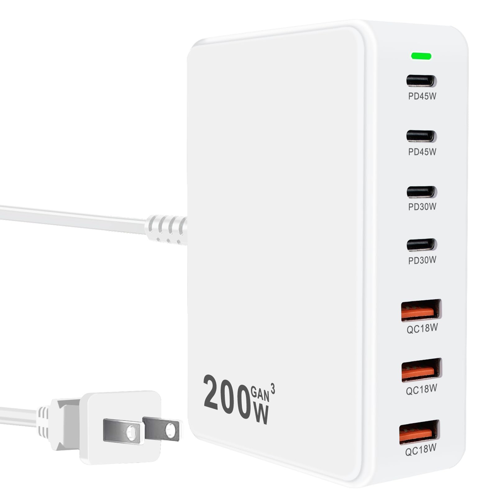 USB Fast Charger Block 200W usbc Charging Block, Upgraded GaN 7-Port Fast Charging Station Hub, USB-C Laptop Charger Adapter, Comp