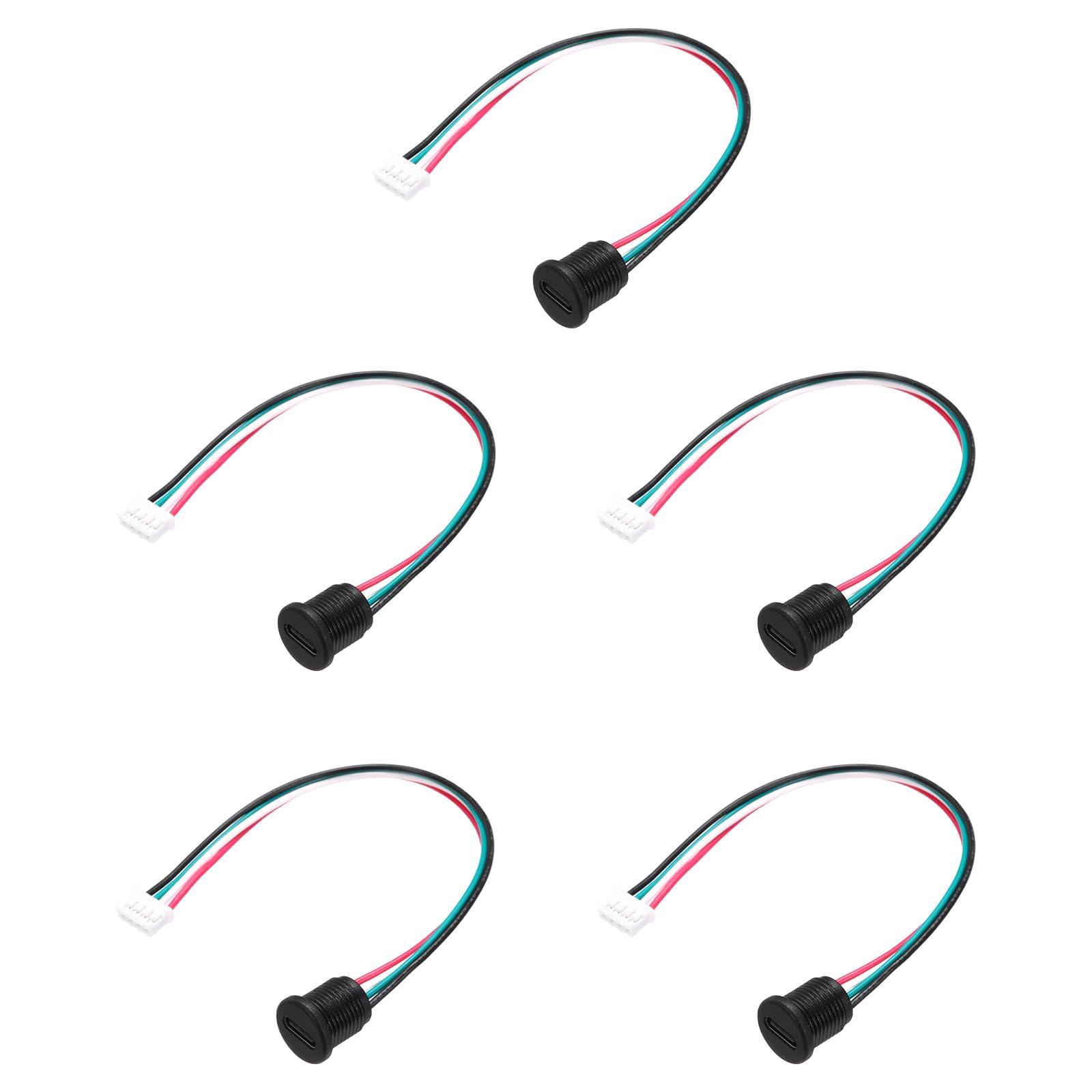 MECCANIXITY 5pcs Type-C Female Chassis 4 Pin Wire, 5V 3A Round Threaded USB-C Female Socket to PH2.0 Waterproof Terminal Extension