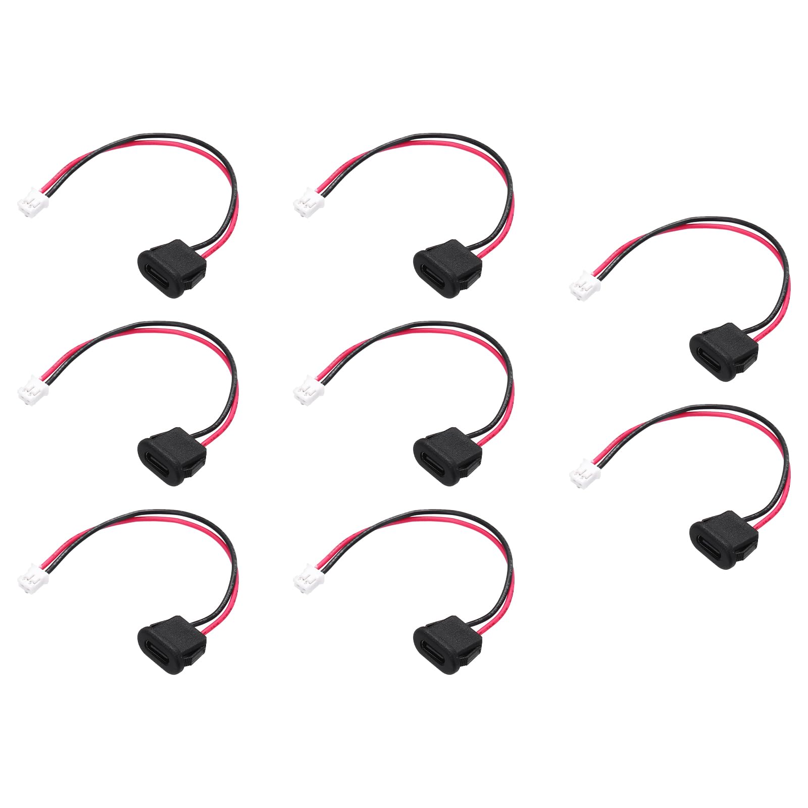 MECCANIXITY 8pcs Type-C Female Chassis 2 Pin Wire, 5V 3A Square USB-C Female Socket to PH2.0 Waterproof Terminal Extension Cable f