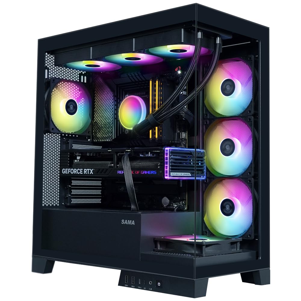 SAMA V50BK – Carcasa para PC ATX de torre media, paneles de vidrio templado duales, ventiladores ARGB PWM de 0.157 x 4.724 in, cha
