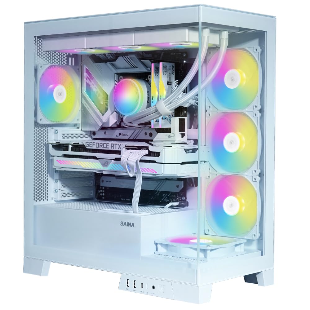 SAMA V50WH – Carcasa para PC ATX de torre media, paneles de vidrio templado duales, ventiladores ARGB PWM de 0.157 x 4.724 in, cha