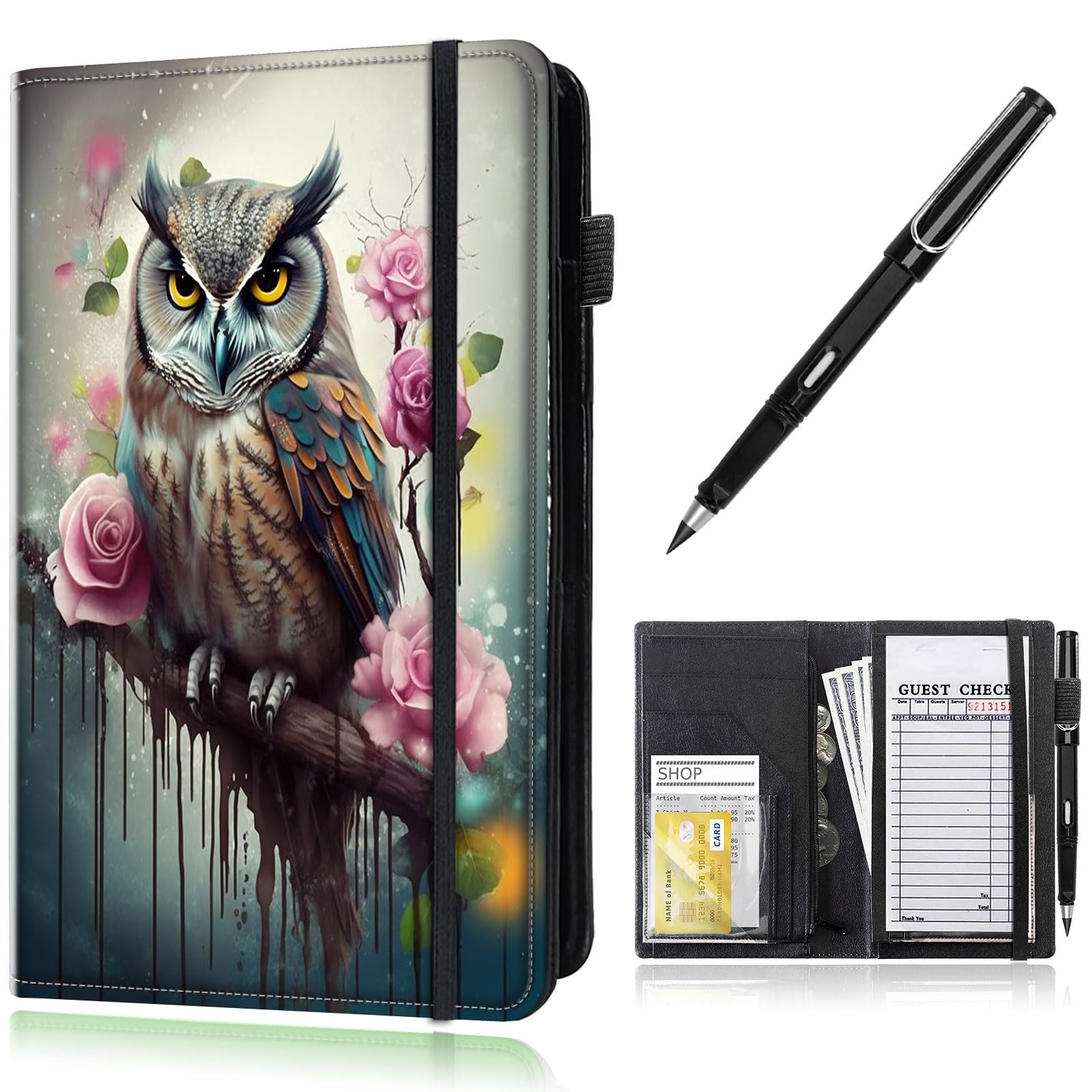 Libreta de mesera para camarera, 5.5 x 8 pulgadas, libro de camarero con bolsillo con cremallera, soporte para bolígrafo y compart