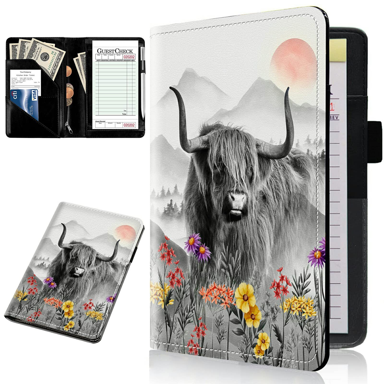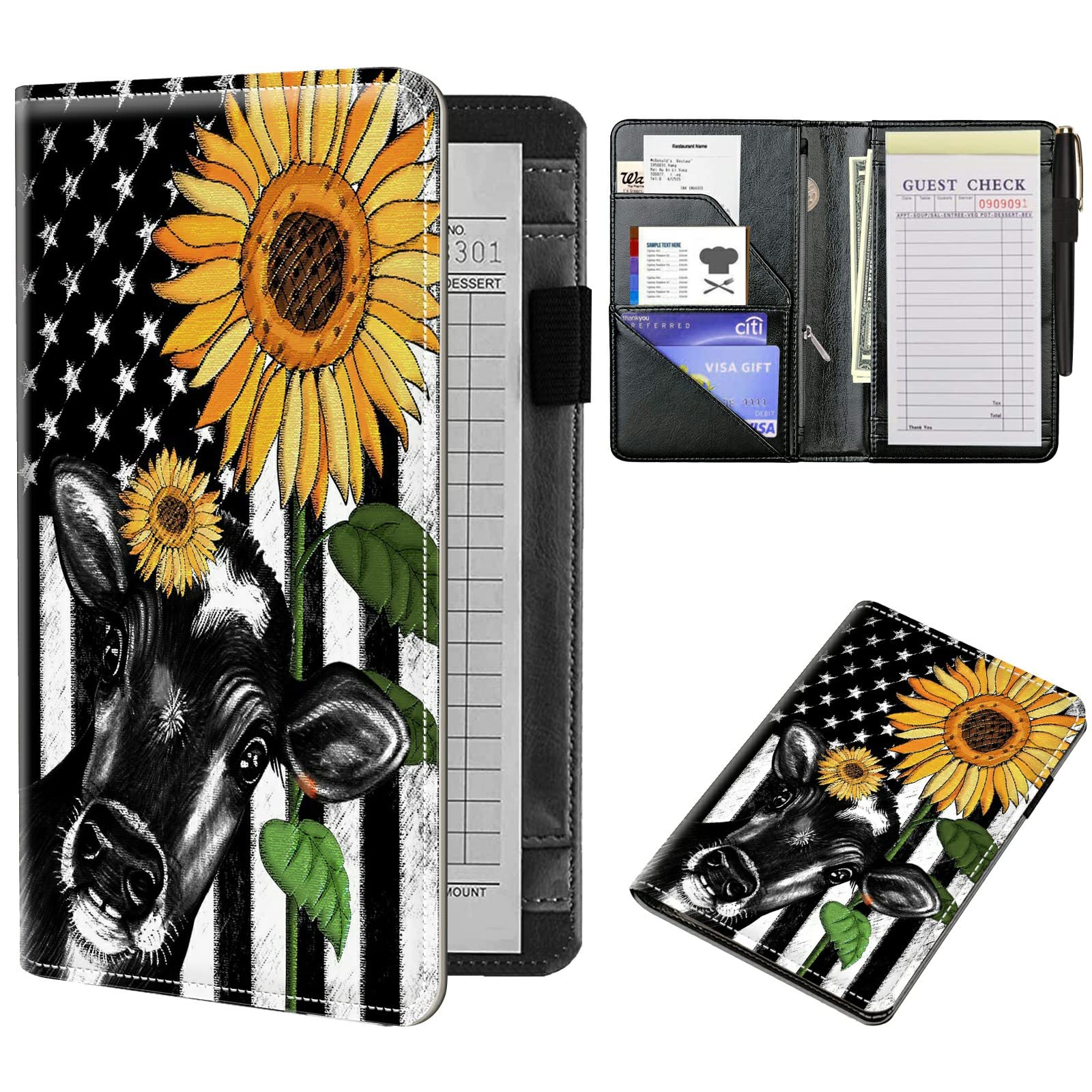 Libro de servidor de cuero para camarera, lindo libro de servidor con bolsillo de dinero con cremallera, organizador de meseros pa