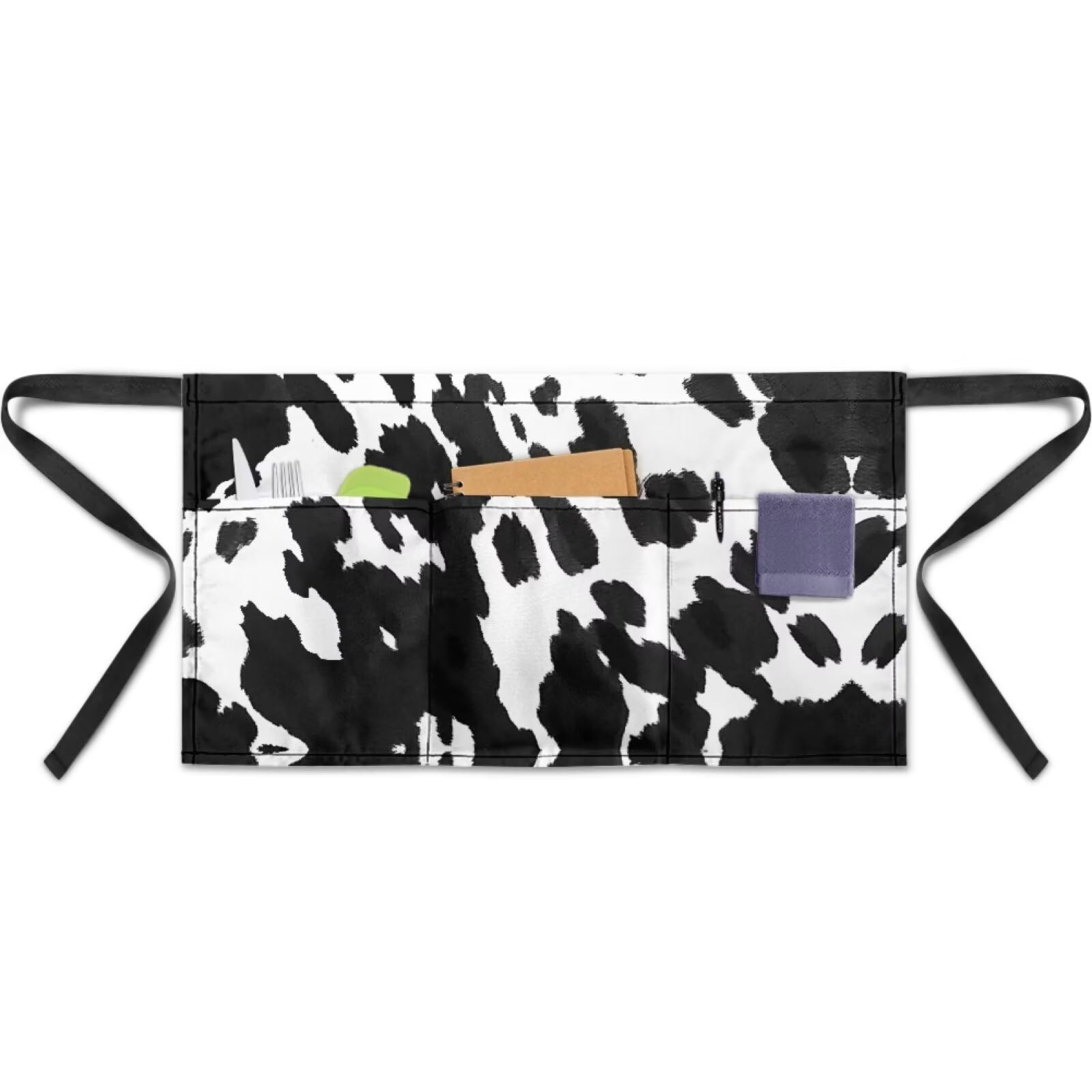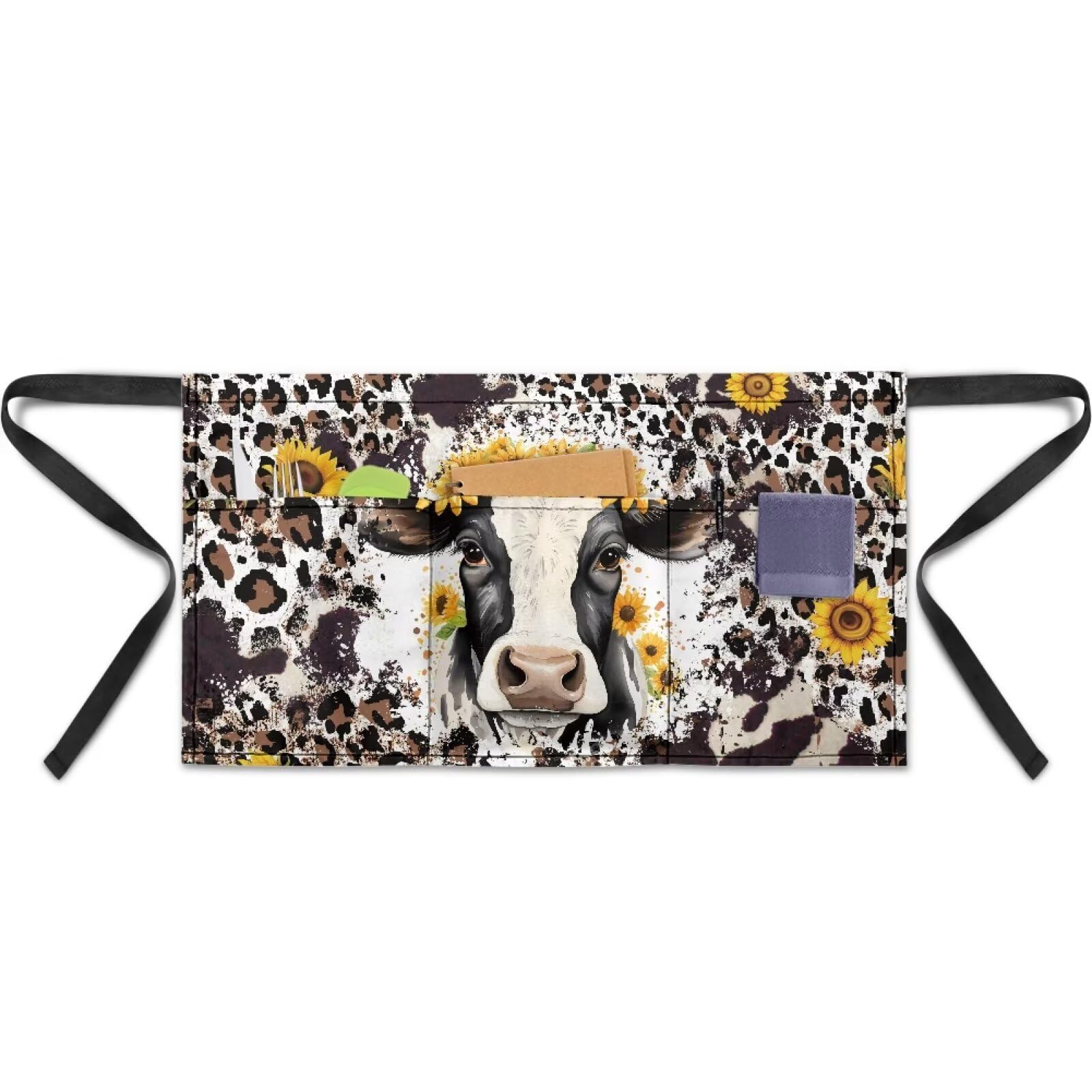 Delantal con estampado de vaca con 3 bolsillos para camarero, medio delantal para mujeres y hombres, para servir restaurante, chef
