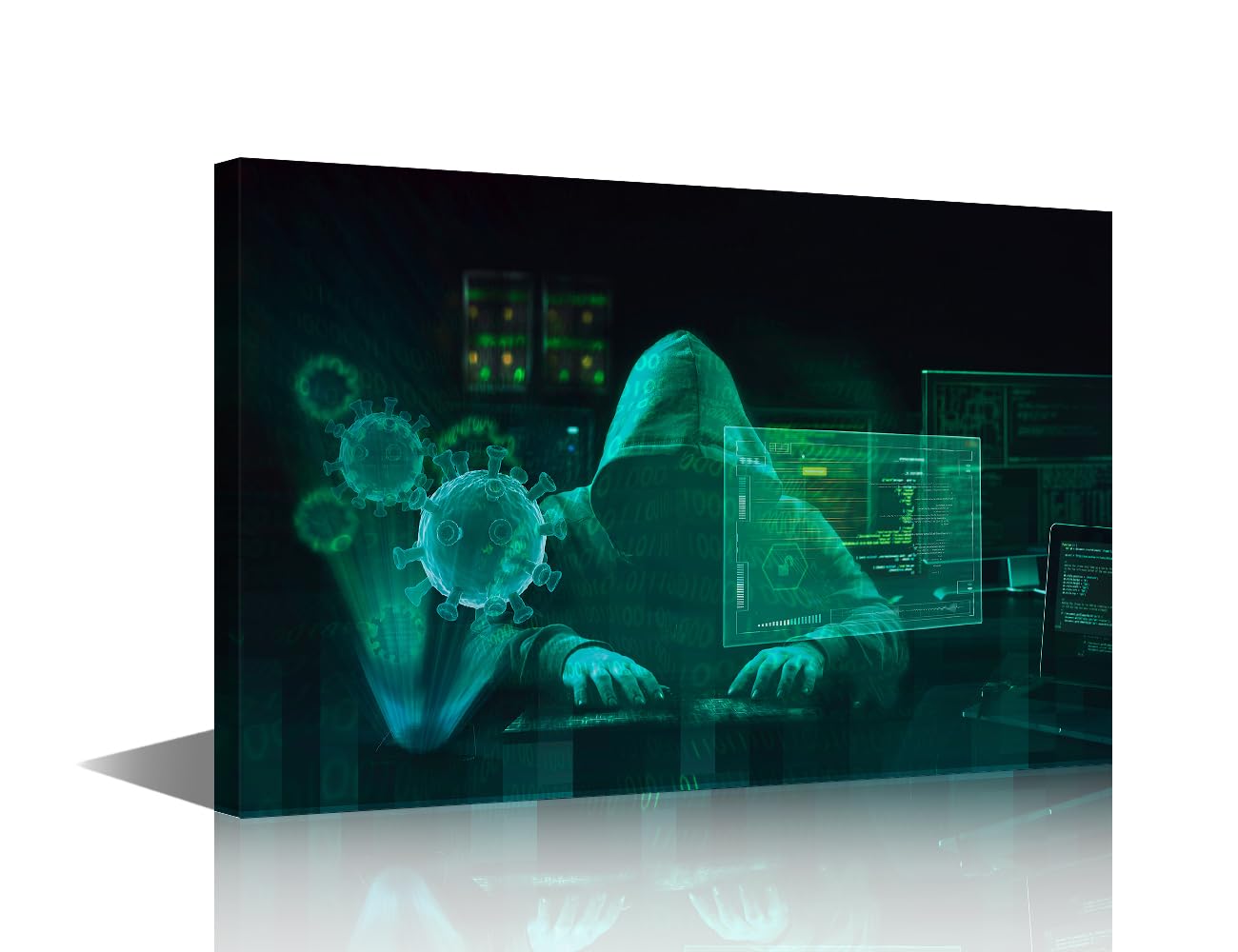 Hacker in Action – Lienzo decorativo para pared, diseño de pirata informático con capucha que rompe en servidores de datos, pintur