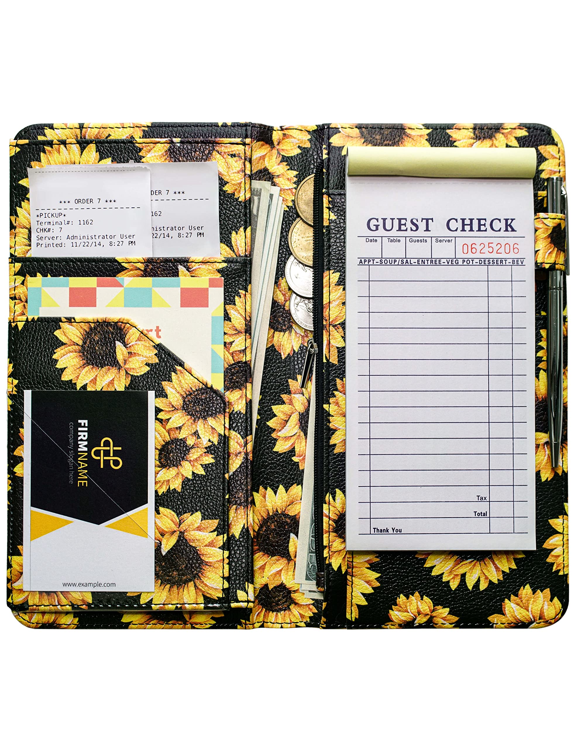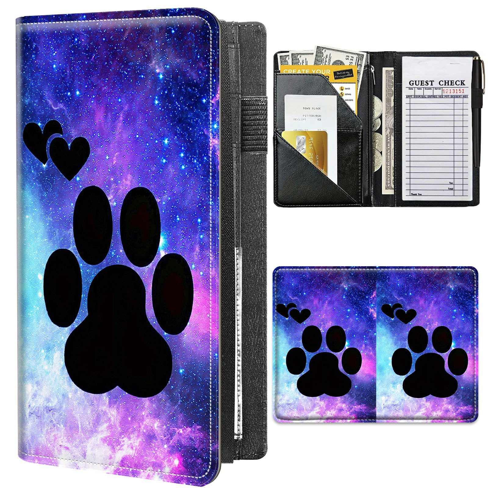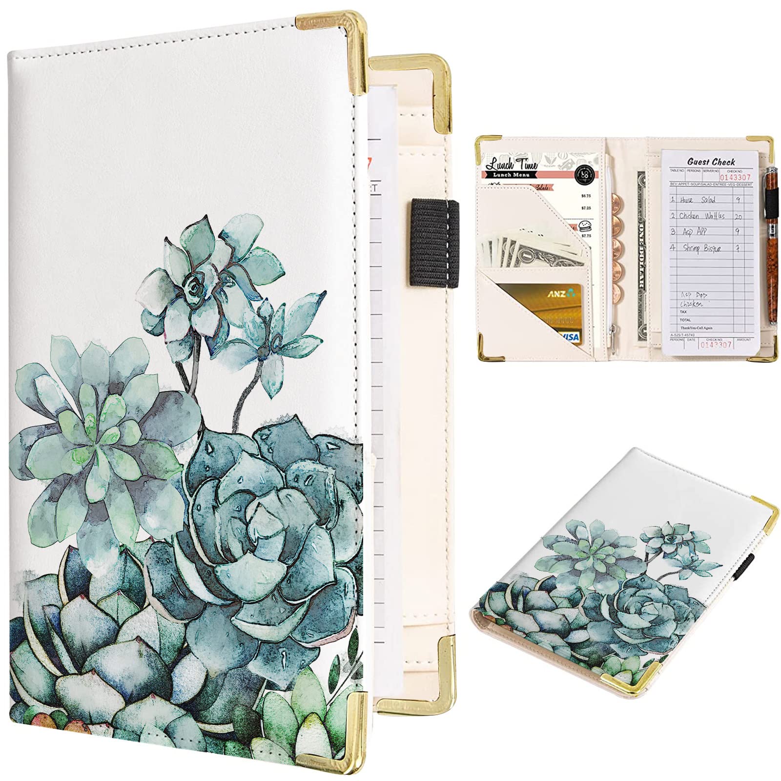 Libros para camarera, cartera de cuero sintético con bolsillo con cremallera, lindo organizador de libros de camarera y camareros