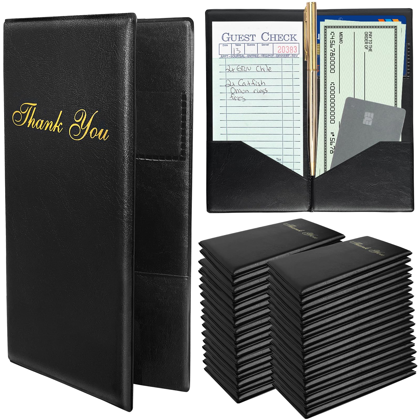 60 libros de servidores para camarera, presentadores de cheques negros para restaurantes, libro de camarera de PVC para servidores