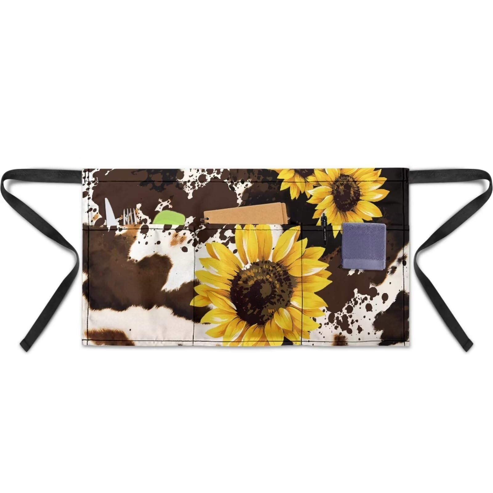 Delantal de cintura con 3 bolsillos reutilizable medio delantal camarera servidor delantal corto